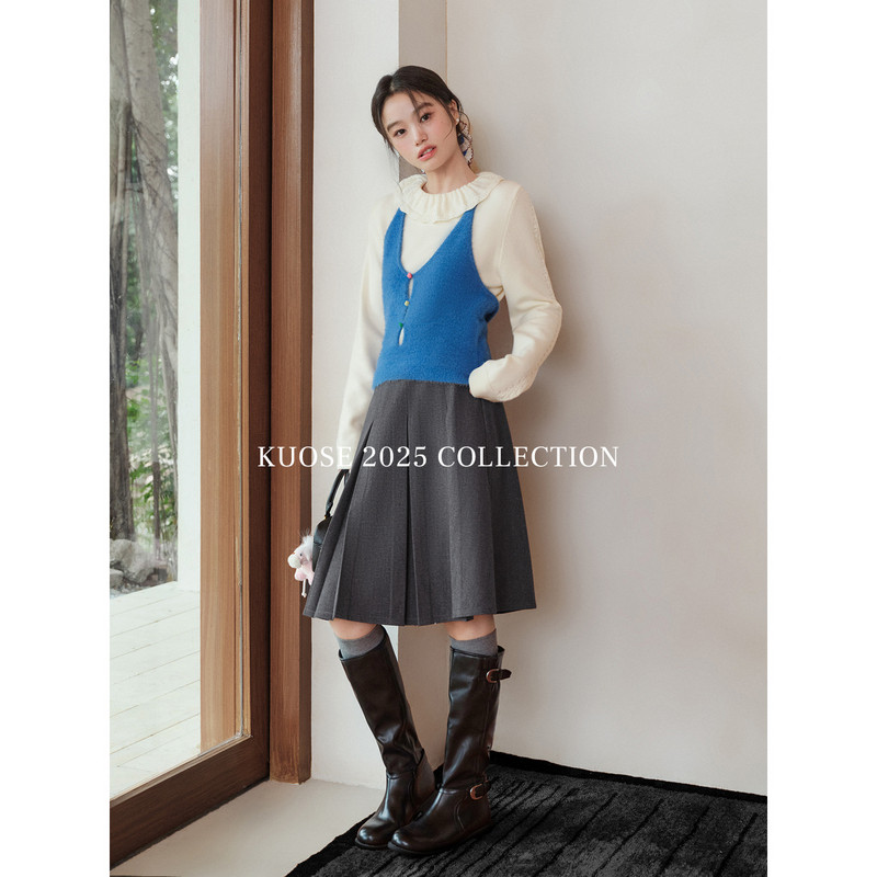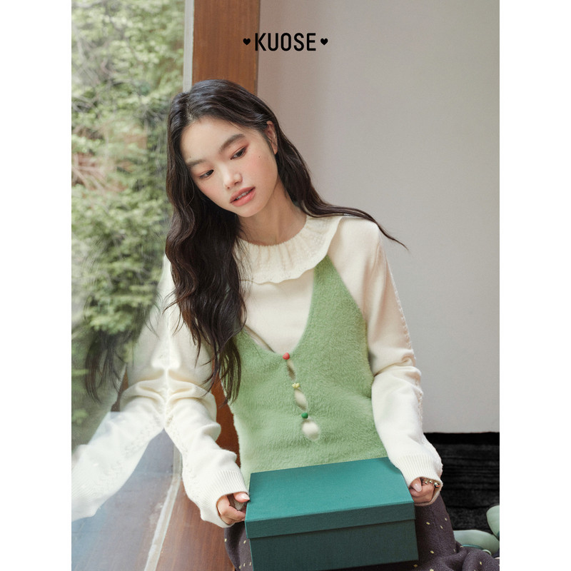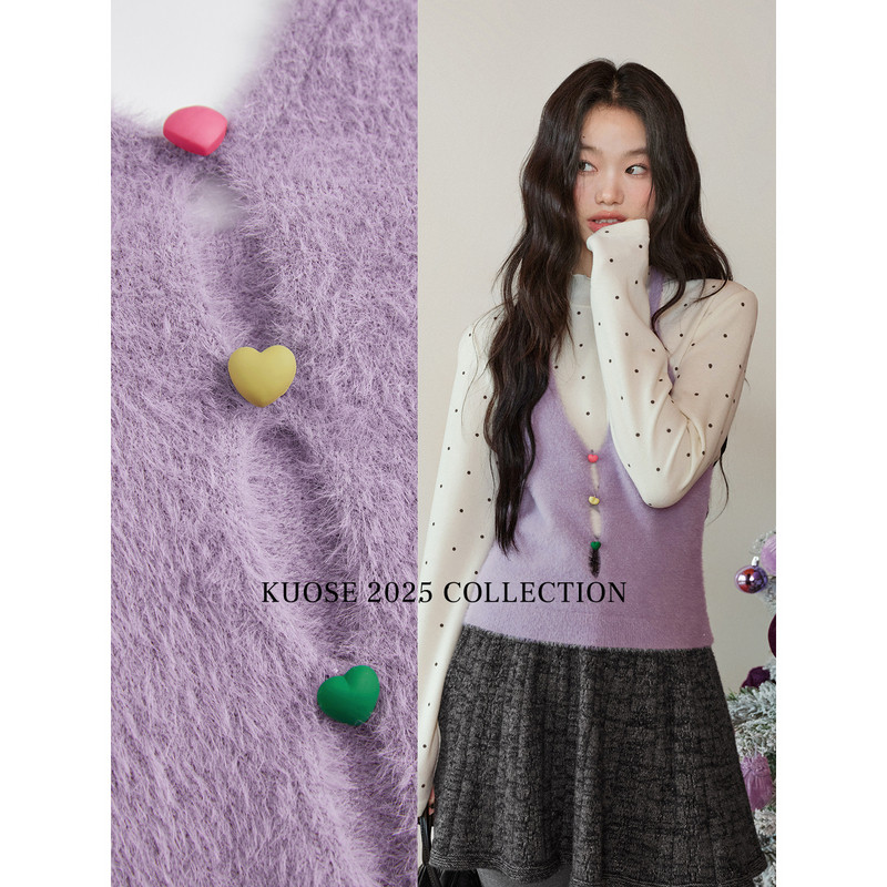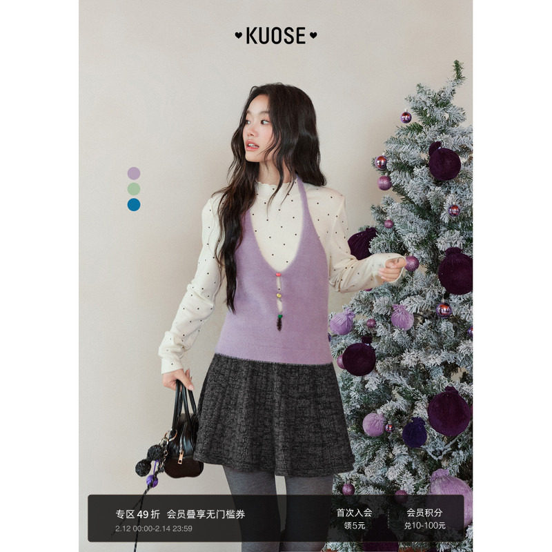 📚 阔色紫色挂脖针织镂空马甲背心女2026春季新款叠穿吊带上衣秋冬