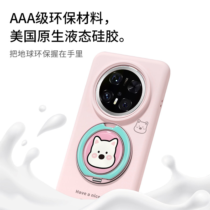 📚 ZHIZHE×粉色西高地适用华为Mate60Pro手机壳带支架mt70por+液态硅胶Eo1支点保护套高级全包简约隐形支架壳女