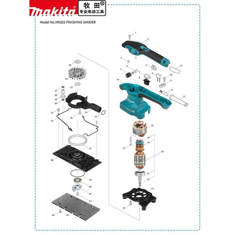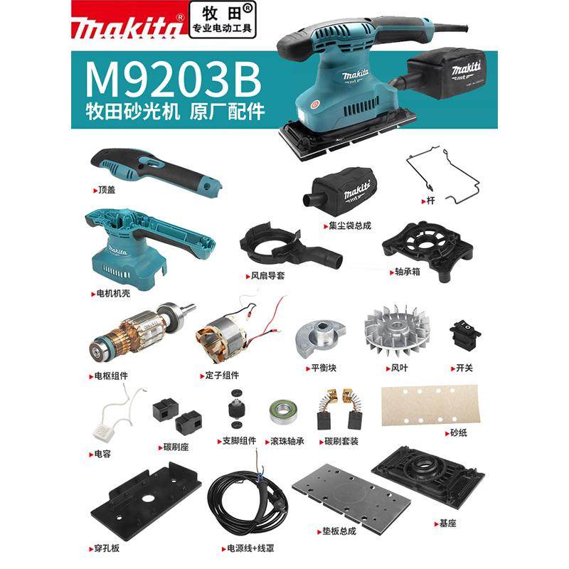 📚 makita牧田砂光机原厂零配件M9203B转子定子机壳开关碳刷底板轴承