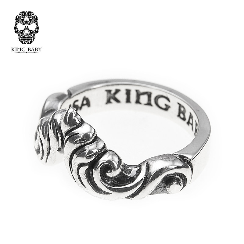📚 KING BABY山峰花纹戒指925银个性潮流时尚银饰百搭