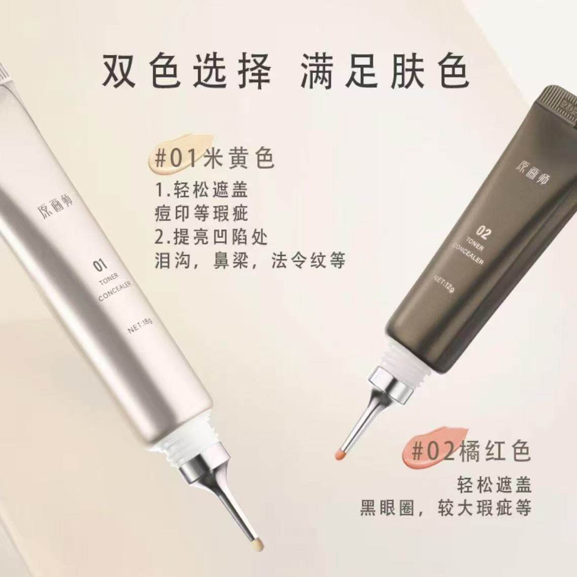 📚 原画师双色眼部眼袋霜遮瑕液遮瑕膏遮盖斑点泪沟痘印脸部遮瑕修饰