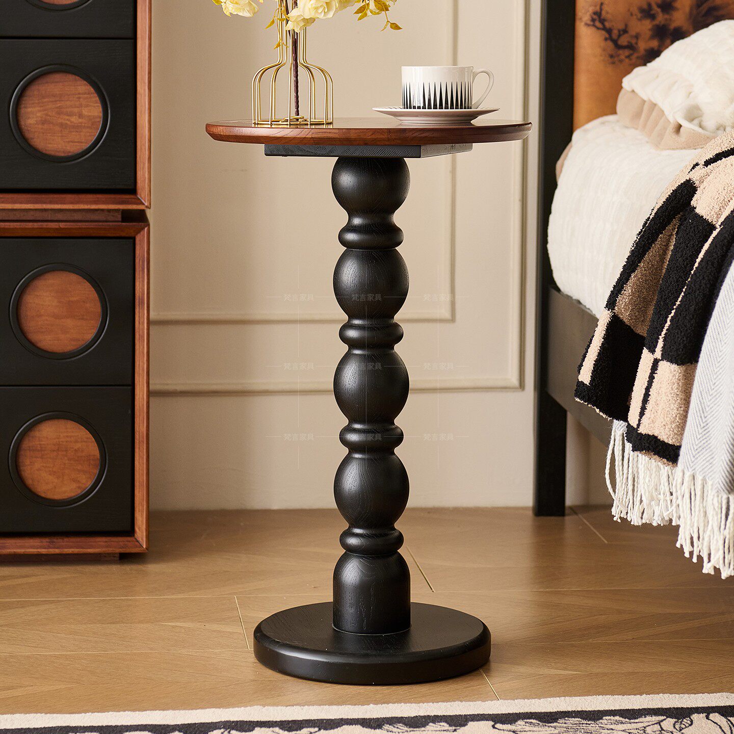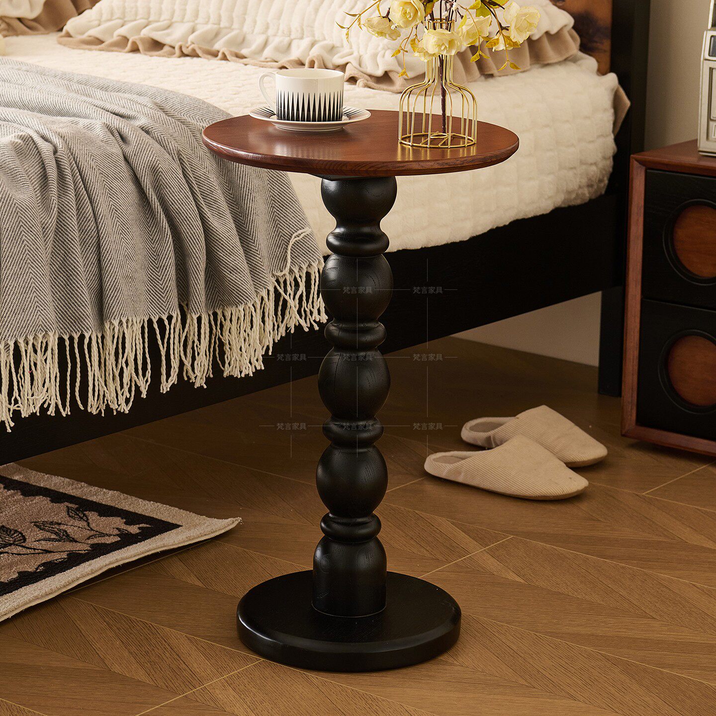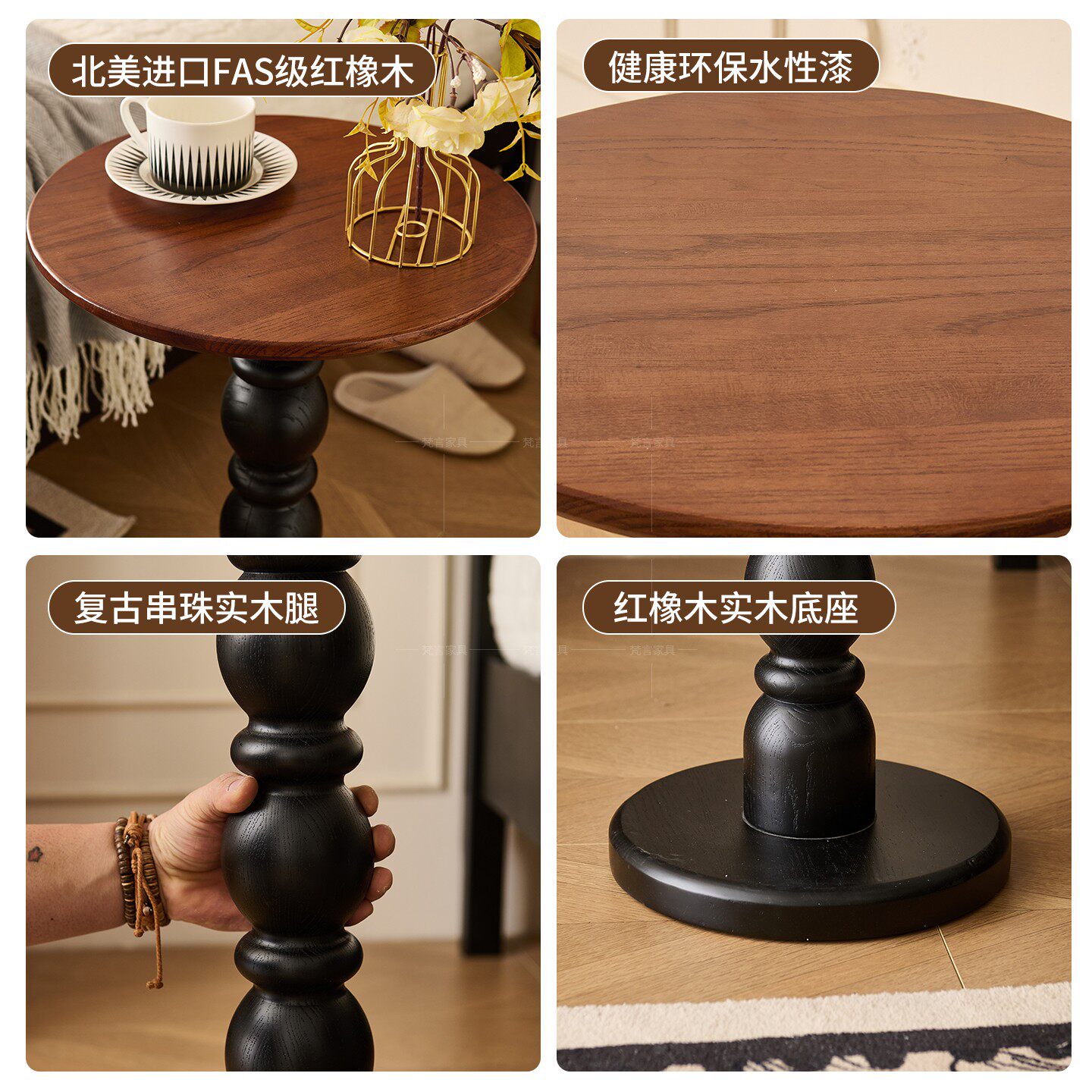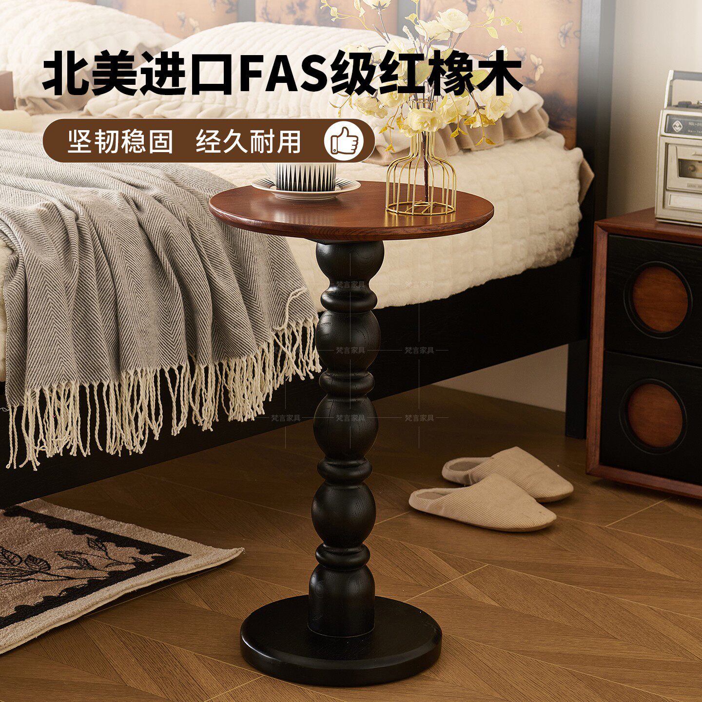 📚 美式复古沙发边几实木中古家具角几客厅法式咖啡桌休闲小圆桌茶几