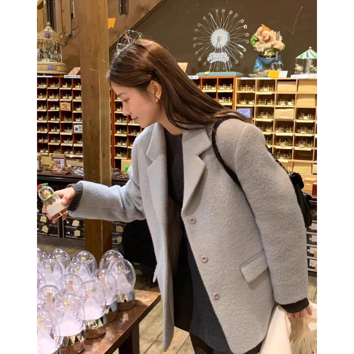 📚 秒发!OUNCE韩国高级感经典简约纯色单排扣蓝色西装羊毛大衣外套