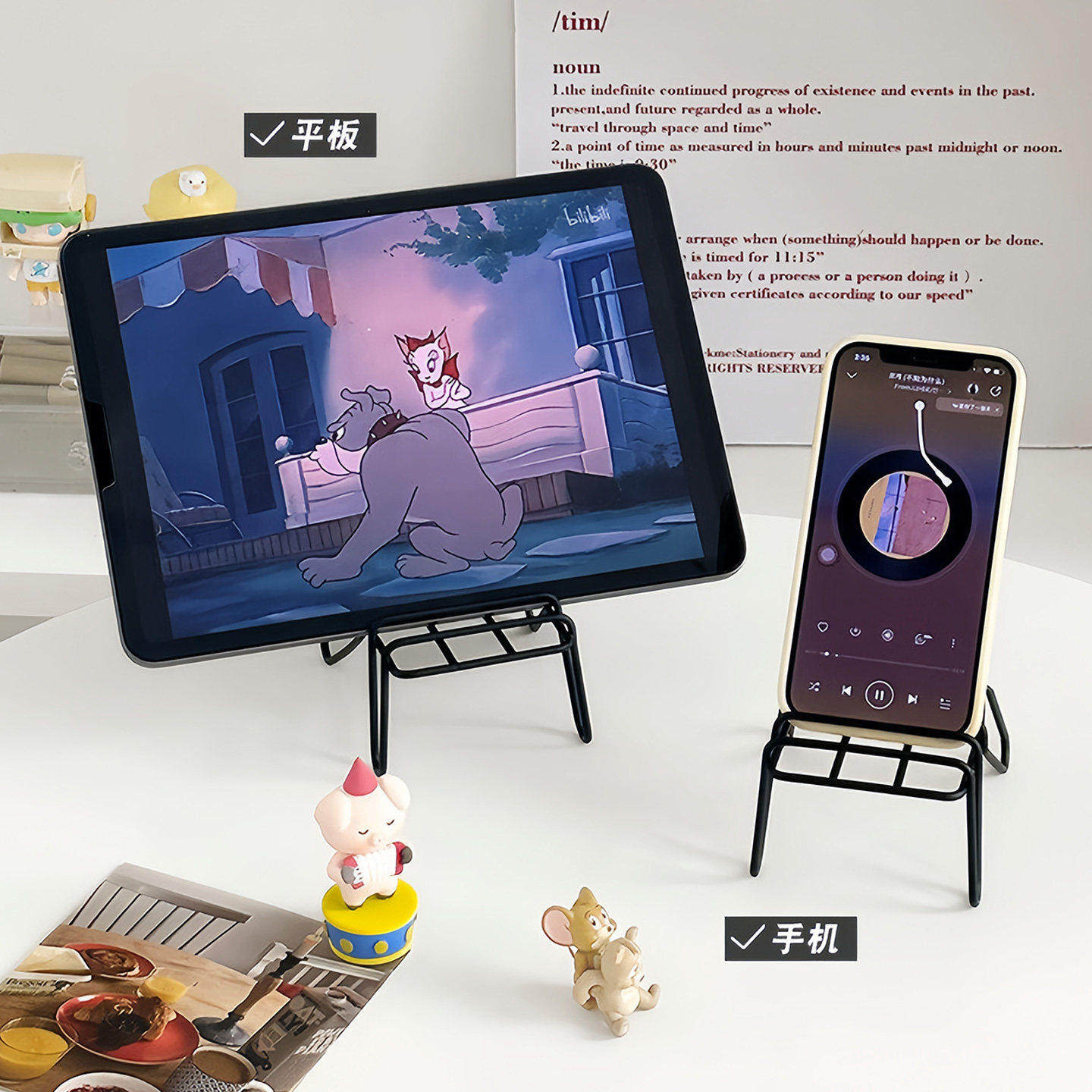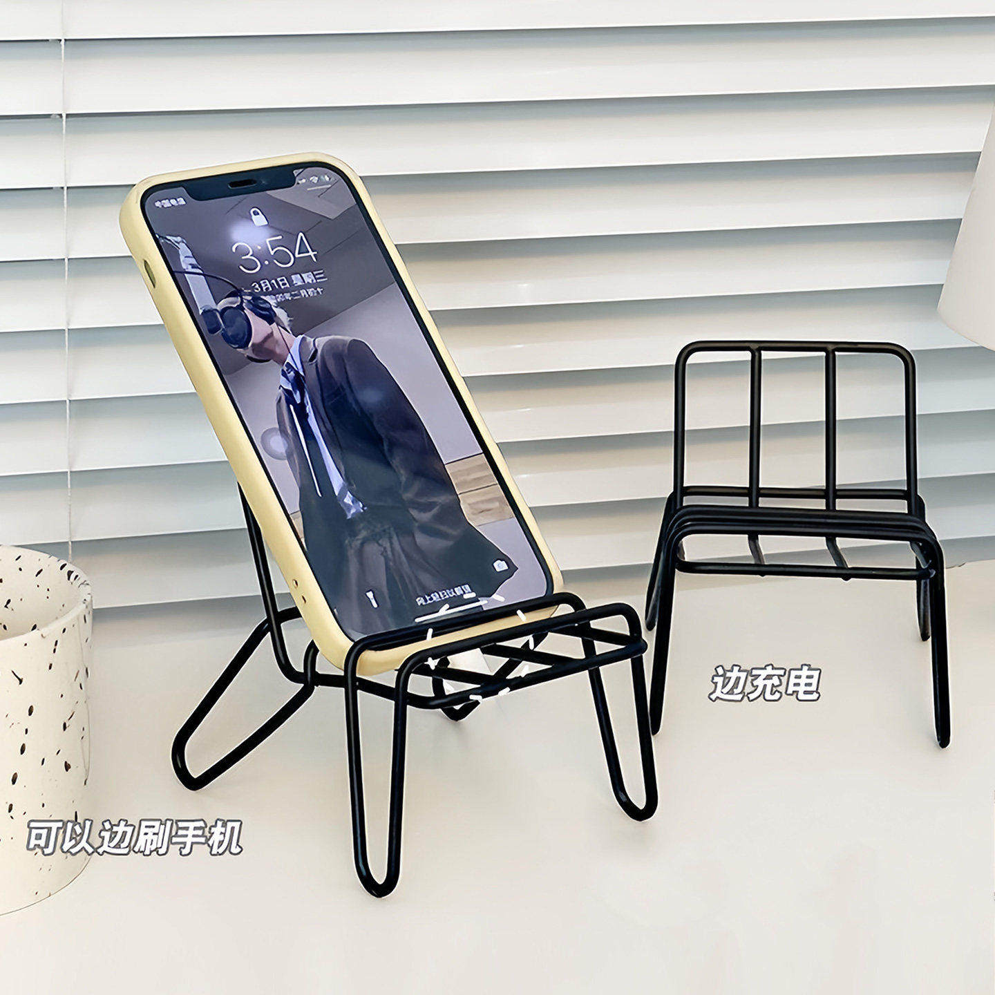📚 小椅子手机支架可爱创意桌面摆件金属铁艺懒人支架便携手机放置架