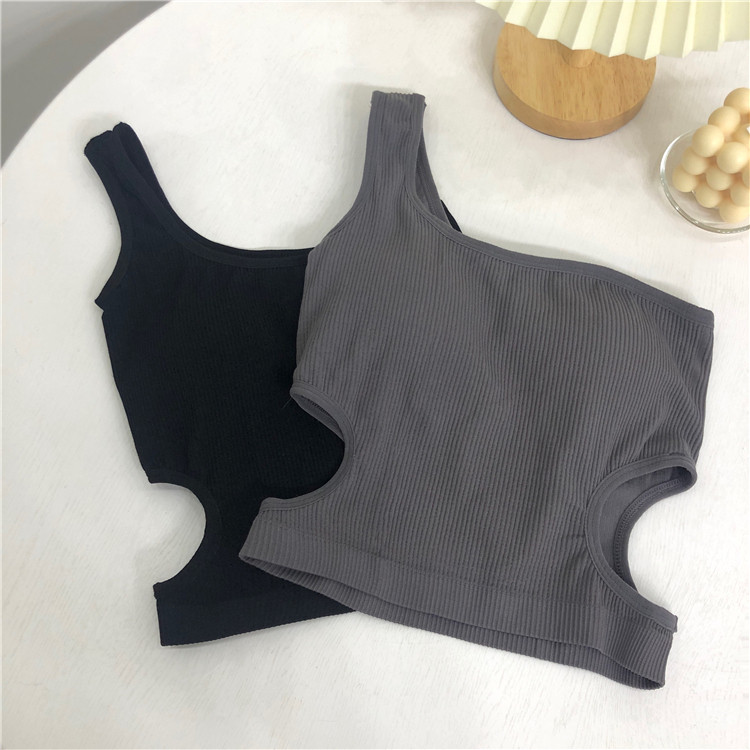 📚 漏洞吊带背心女2023年新款韩版紧身外穿无袖上衣内搭黑色打底衫潮