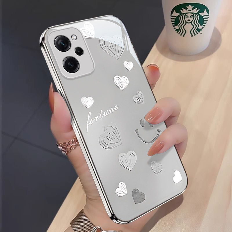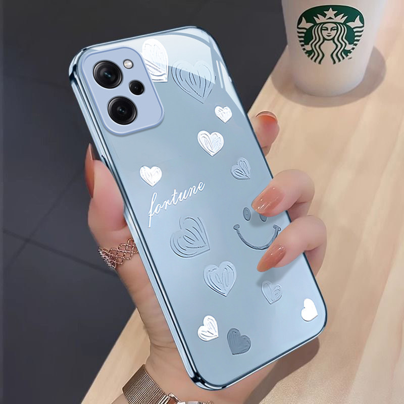 📚 适用于小米红米Note12Pro极速版手机壳时尚简约渐变爱心网红同款金属漆玻璃保护套全包边防摔壳