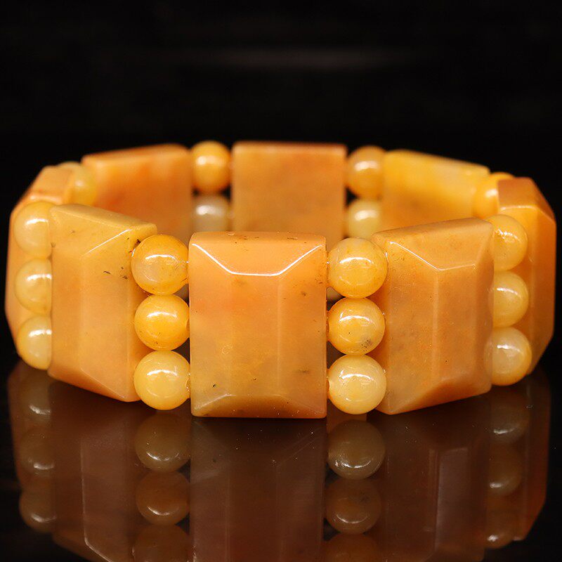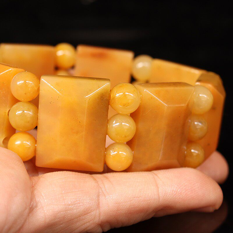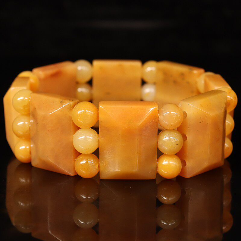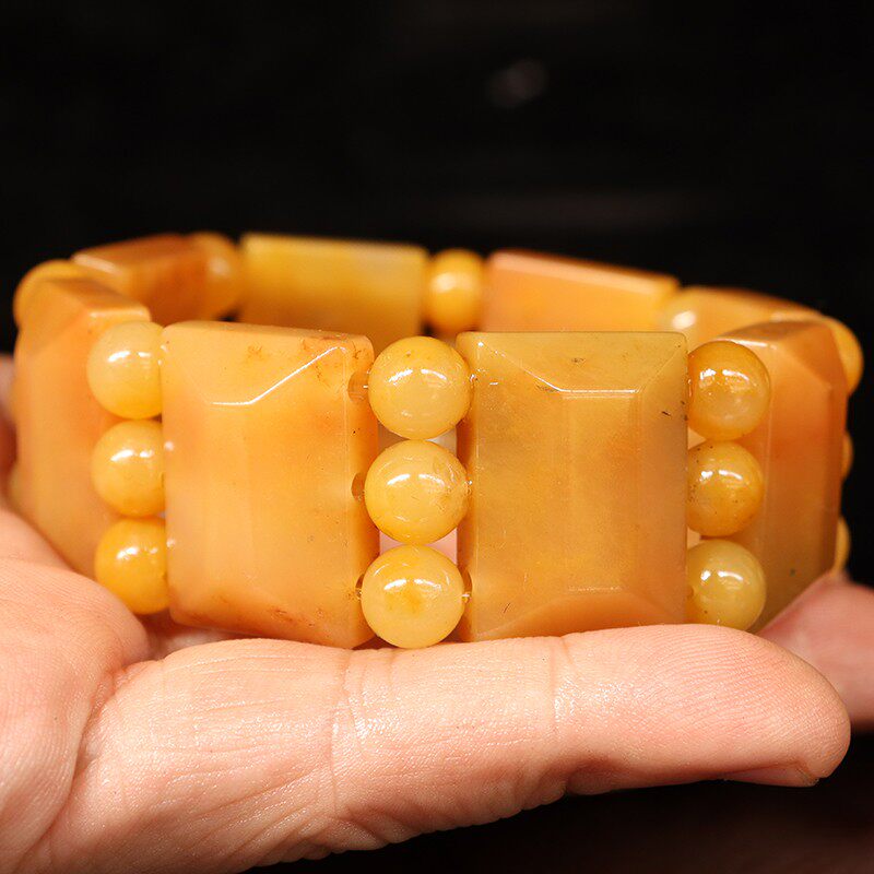 📚 25*18*9mm8颗 圆珠24颗82g天然桂林鸡血玉石手链田湾料男士手链
