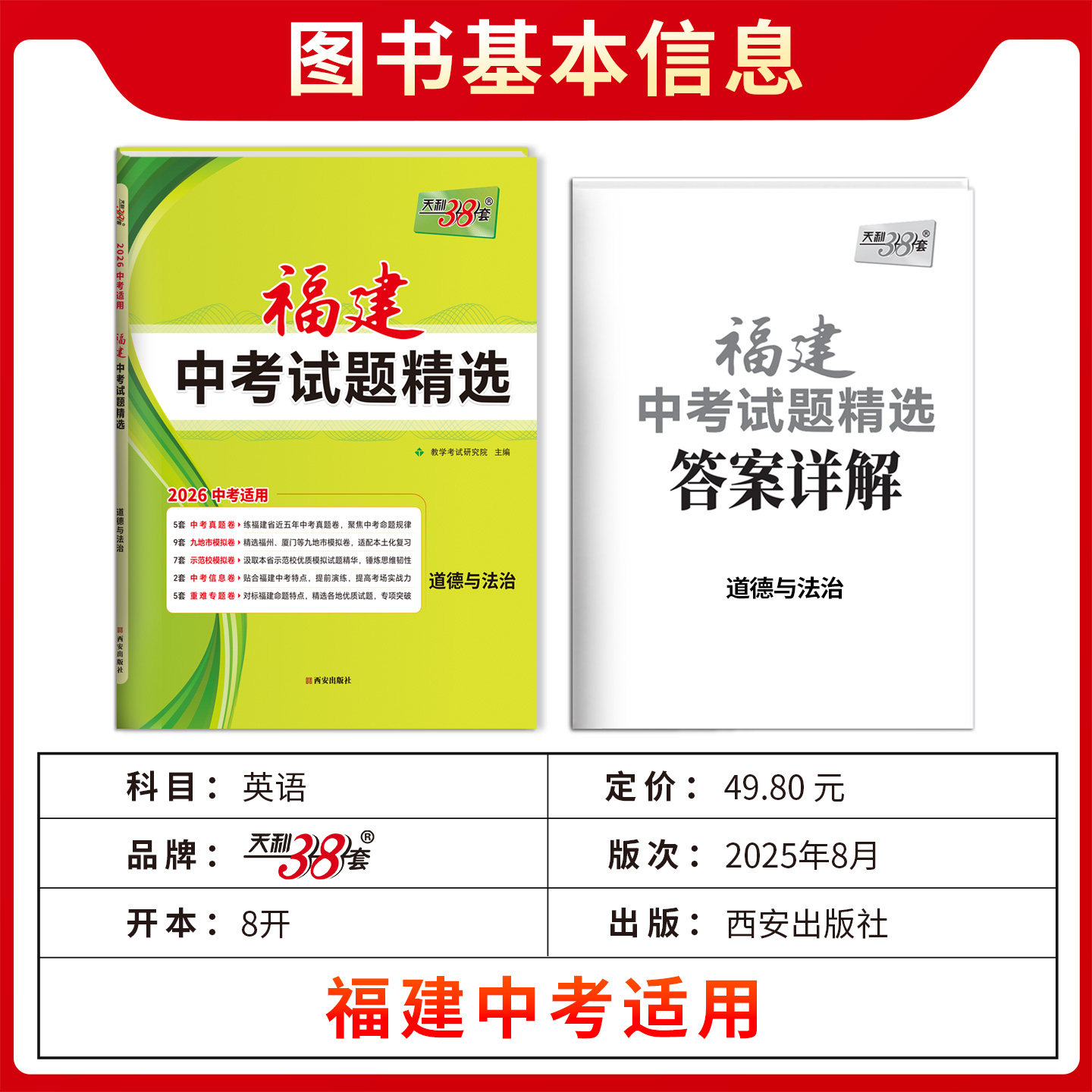 📚 2026天利38套 福建中考试题精选 道德与法治 初三试题试卷精选模拟专项训练中考复习资料书汇编中考总复习真题卷福建地区专用