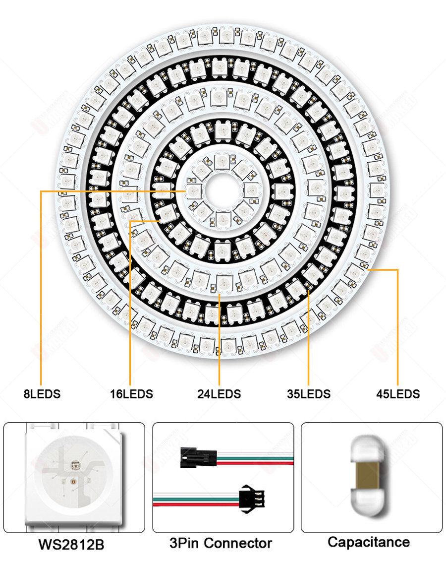 📚 LED幻彩灯圈 5V圆形幻彩灯圈 2812B幻彩环 内置IC 幻彩圆圈 60灯