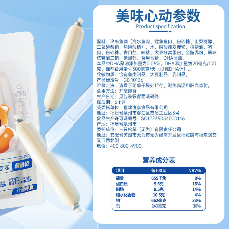 📚 三只松鼠_鳕鱼肠原味即食鱼肉肠儿童零食小吃海味解馋小零食熟食