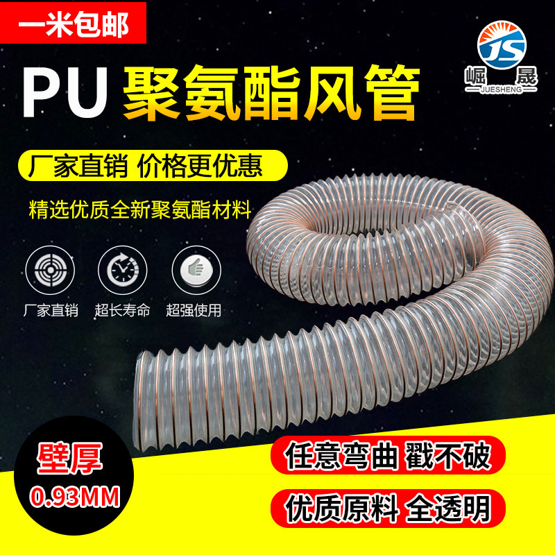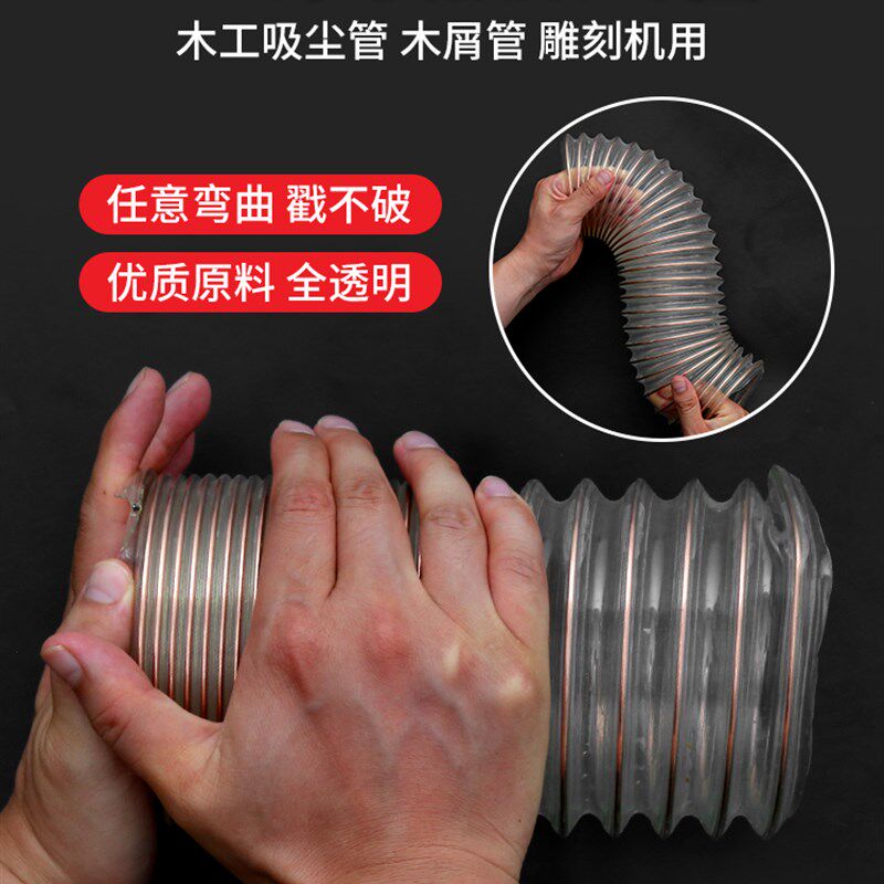 📚 PU聚氨酯风管吸尘管软管镀铜钢y丝软管工业木工雕刻机风机管道0.9