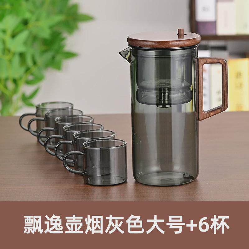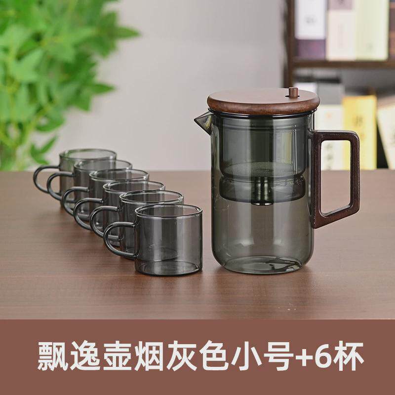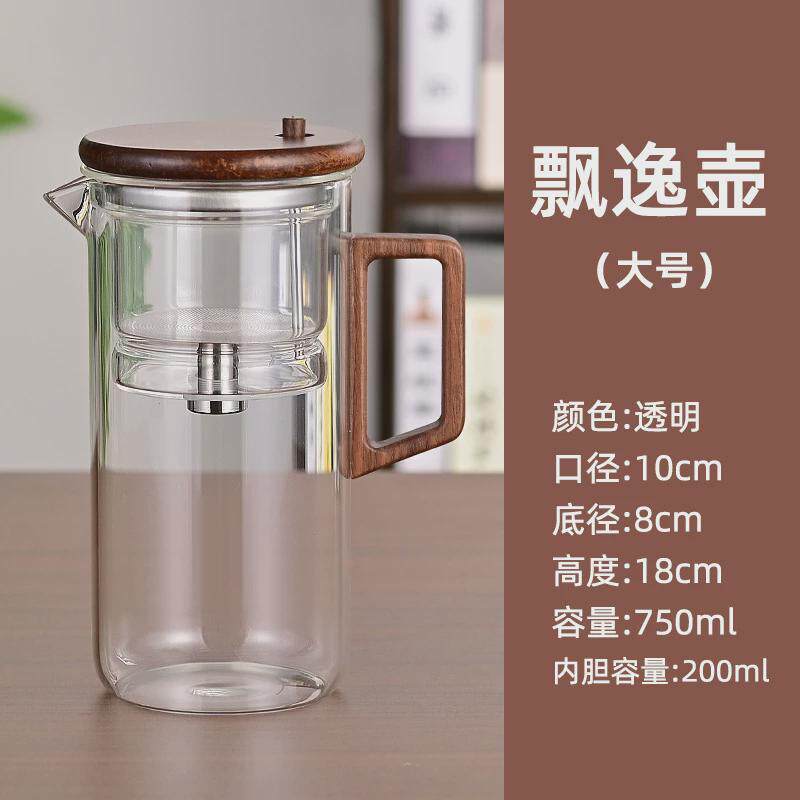 📚 飘逸杯泡茶壶不锈钢配件全玻璃一黑胡桃键控水加厚家用茶水分离杯