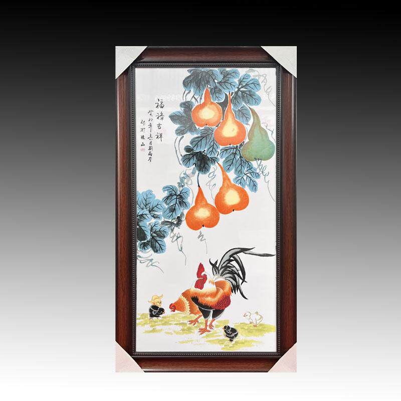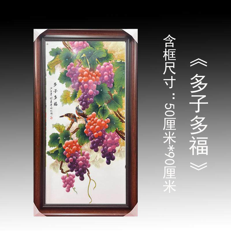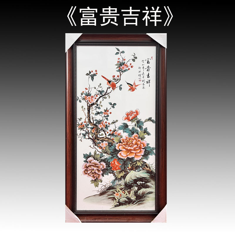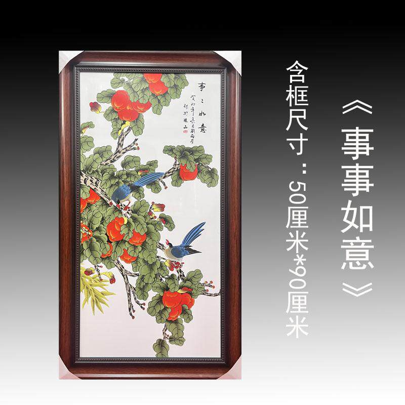 📚 中式景德镇陶瓷手绘瓷板画现代客厅装饰画实木框玄关风景挂画包邮