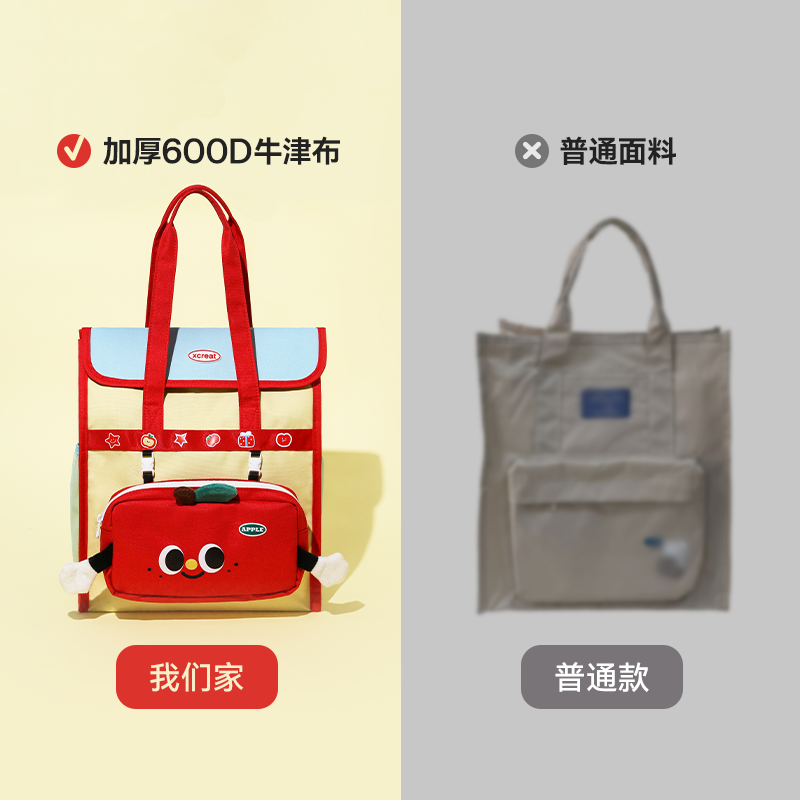📚 Missart 多功能苹果手提补习袋大容量小学生儿童辅导班课外学习补课包学生男书本收纳袋女孩美术包作业书包