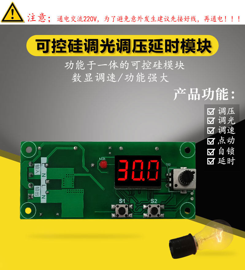 📚 220V交流电机调速模块可控硅晶闸管 多功能数字调光调压器PWM线性