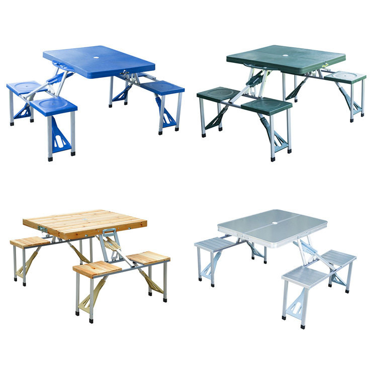 📚 跨境户外桌连体折叠一桌四椅实木野营餐桌椅套装便携式广告桌子