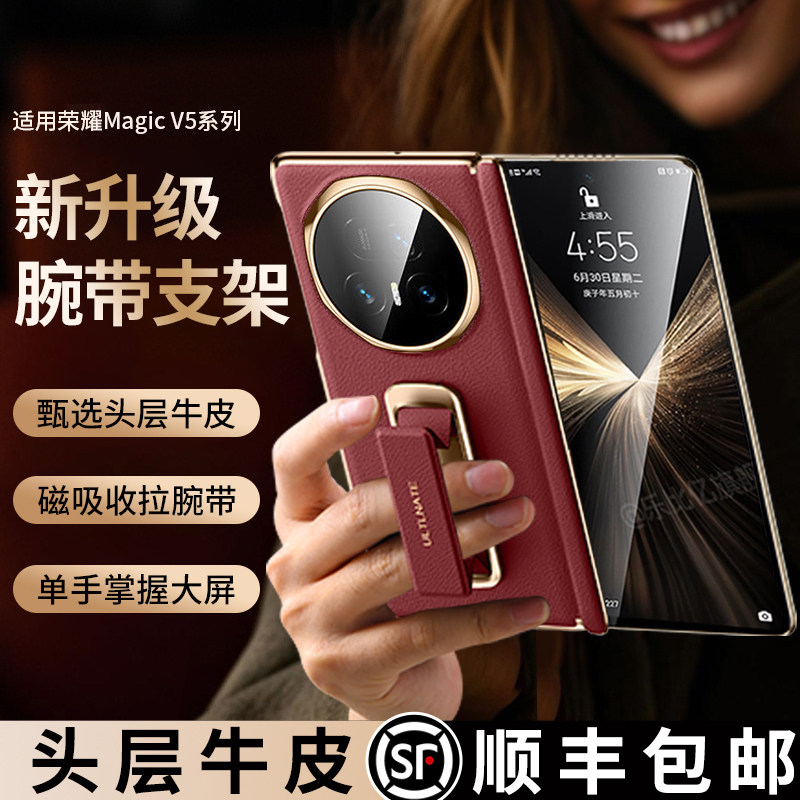 🎉小伙伴们,今天我要给大家种草一款超值的手机壳——乐比亿适用荣耀Magic V5手机壳新款折叠屏Magic V5至臻版保护套!这款真皮腕带支架中轴全包防摔品,真的是我近期的心头好!