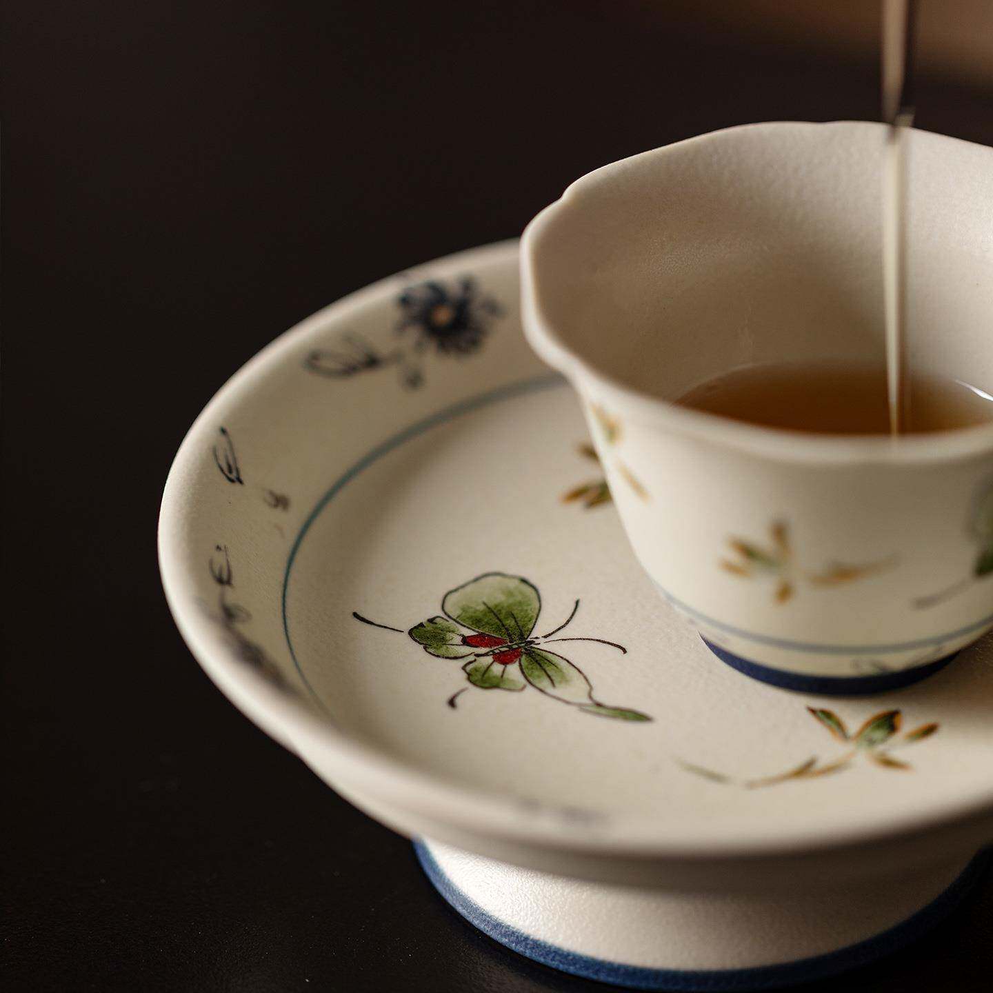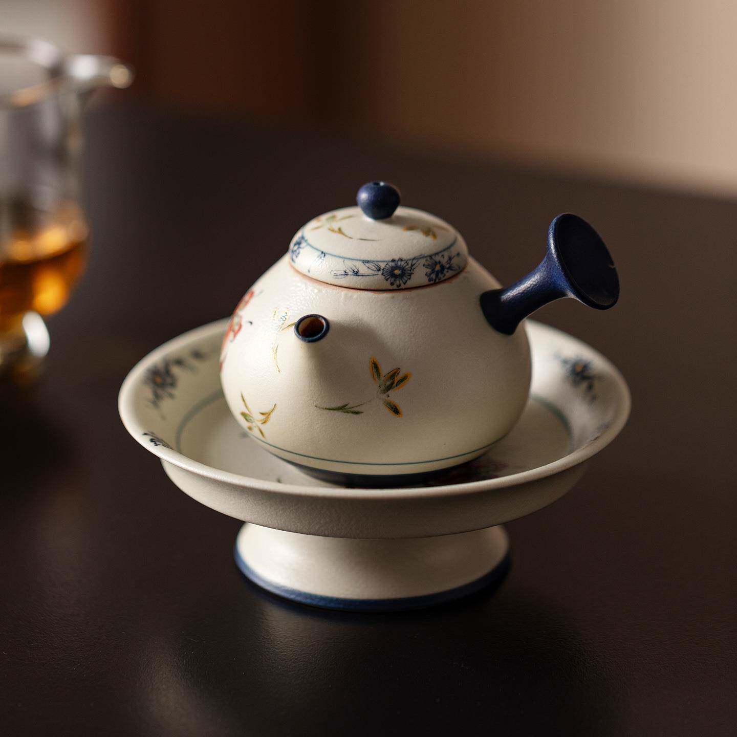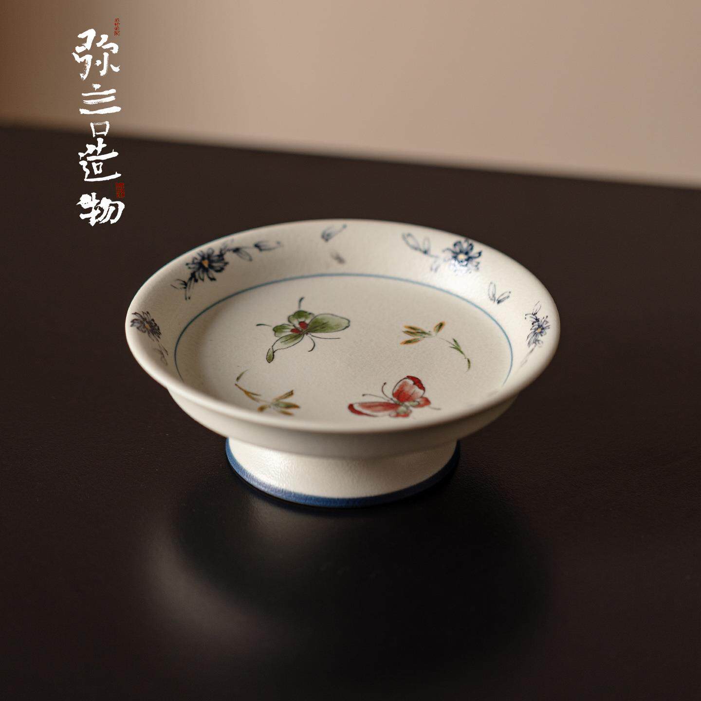 📚 弥言青花火石红陶瓷壶承家用复古干泡盘中式糕点差点盘单个养壶垫