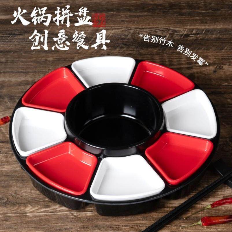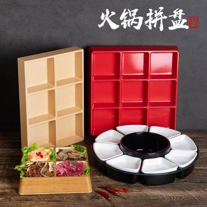 📚 九宫格火锅格子网红创意火锅辣小膳红白格子拼盘密胺九宫格餐盘特