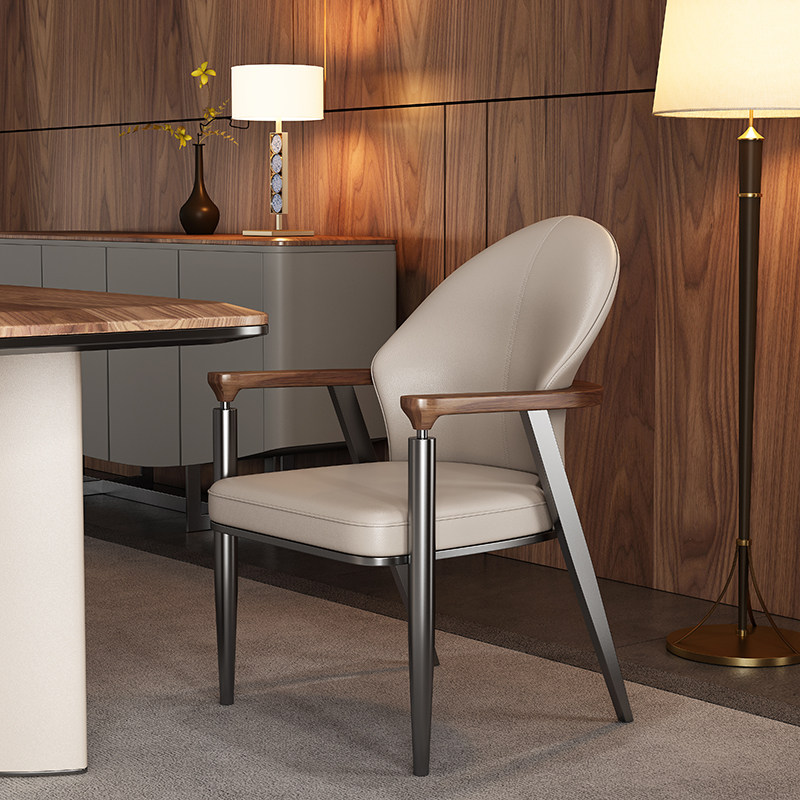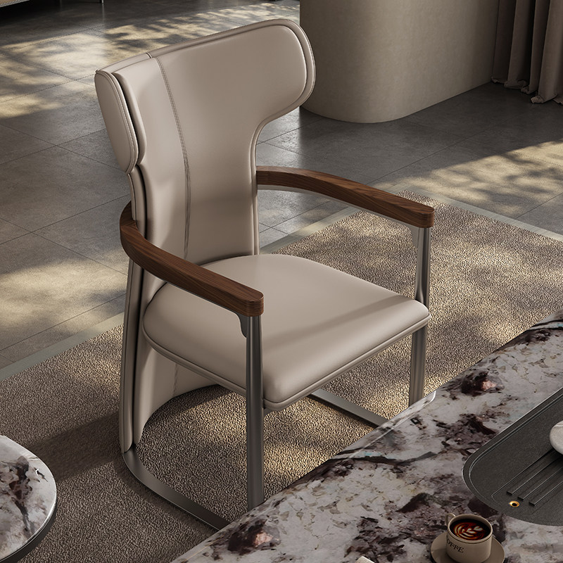 📚 意式轻奢茶室主人椅2025新款别墅真皮餐桌椅大平层茶室主人位茶椅