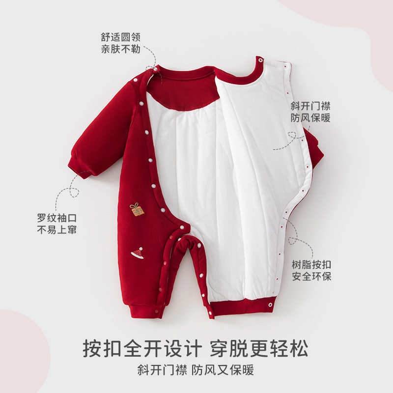 📚 Baby's winter warm padded one-piece clothes新年红外出服哈衣