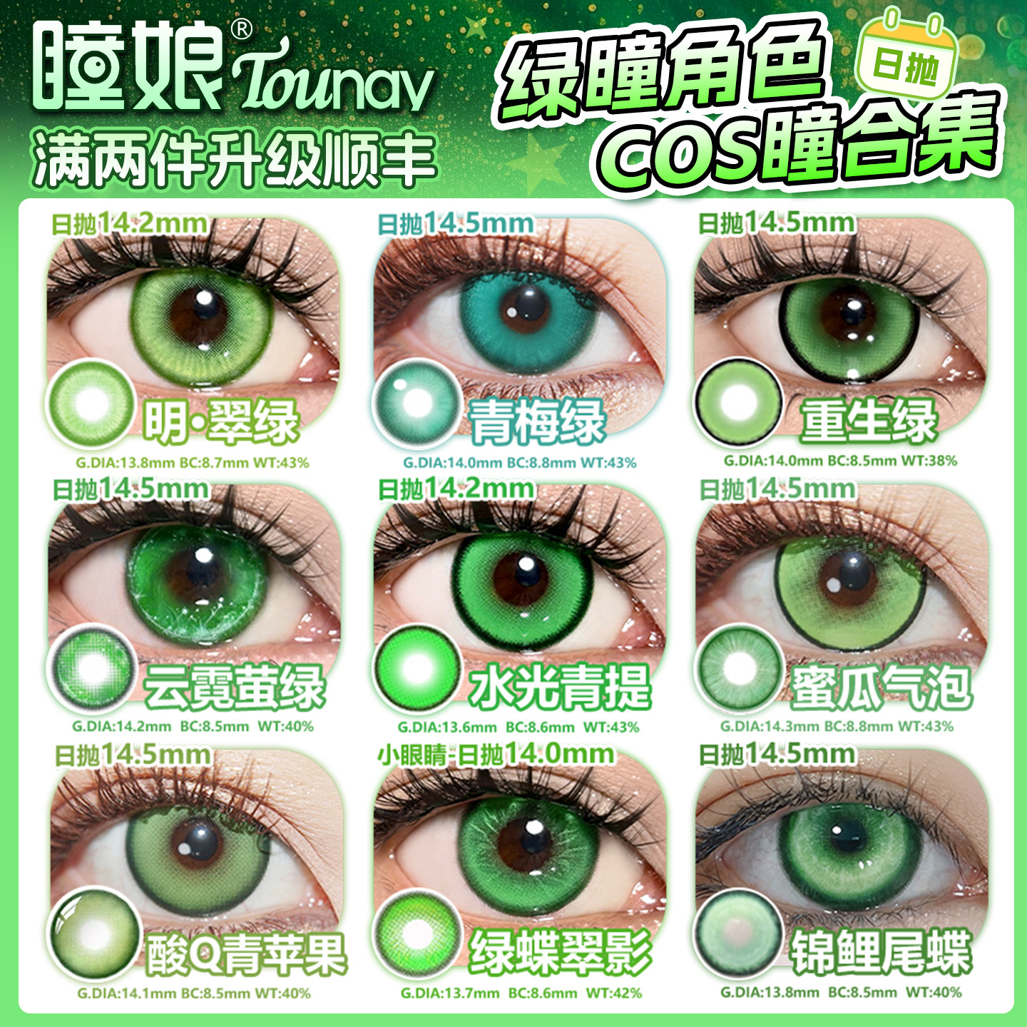 📚 DOYA绿色美瞳cos日抛酸q青苹果涂山苏芙莉莲蕾塞小樱甘露寺瞳娘