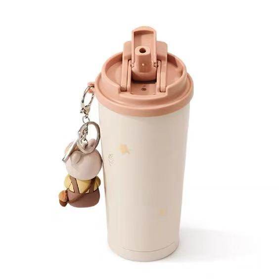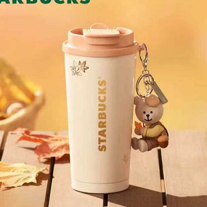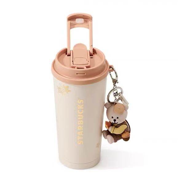 📚 星巴克杯子480ml秋日小熊双饮口不锈钢杯保温吸管杯可爱小熊奶白
