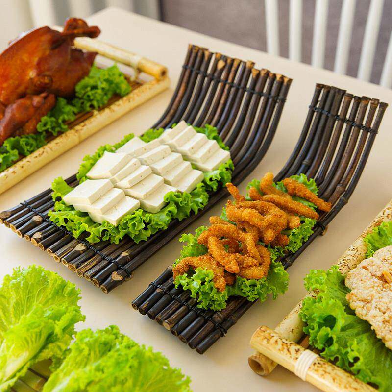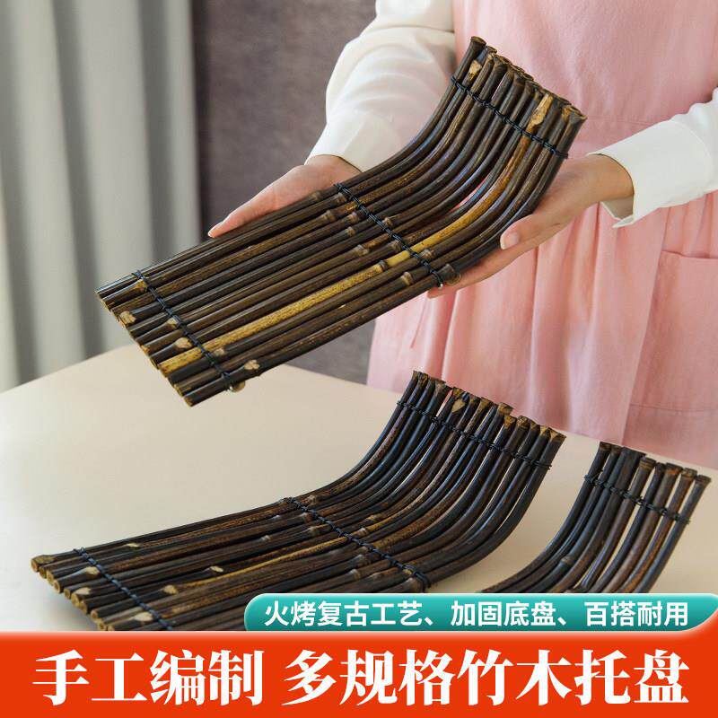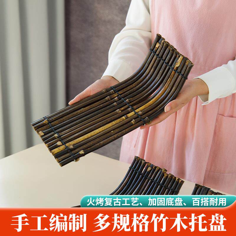 📚 复古翘脚竹排盘子日式料理刺身摆盘创意餐具酒店商用家用竹木茶盘