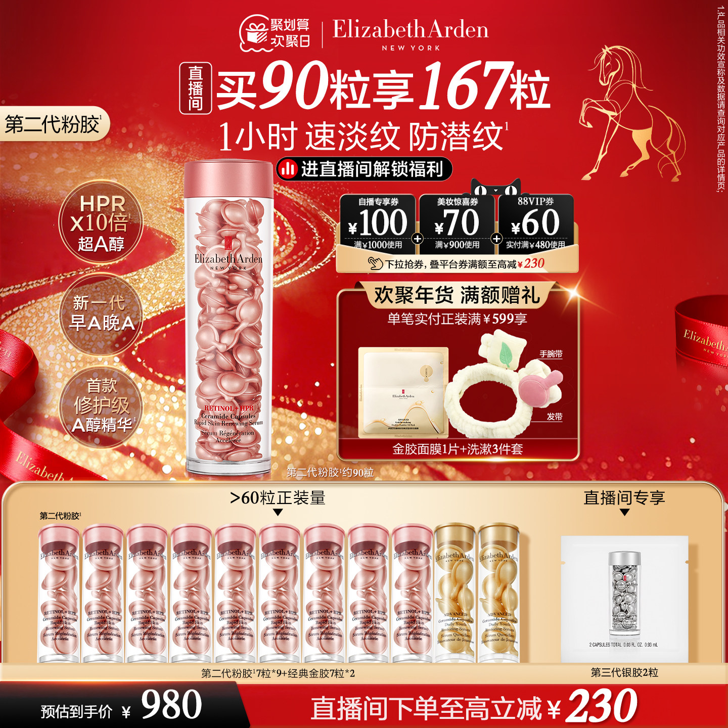 📚 【自播专享】雅顿第二代粉胶精华淡纹修护A醇抗皱精华胶囊
