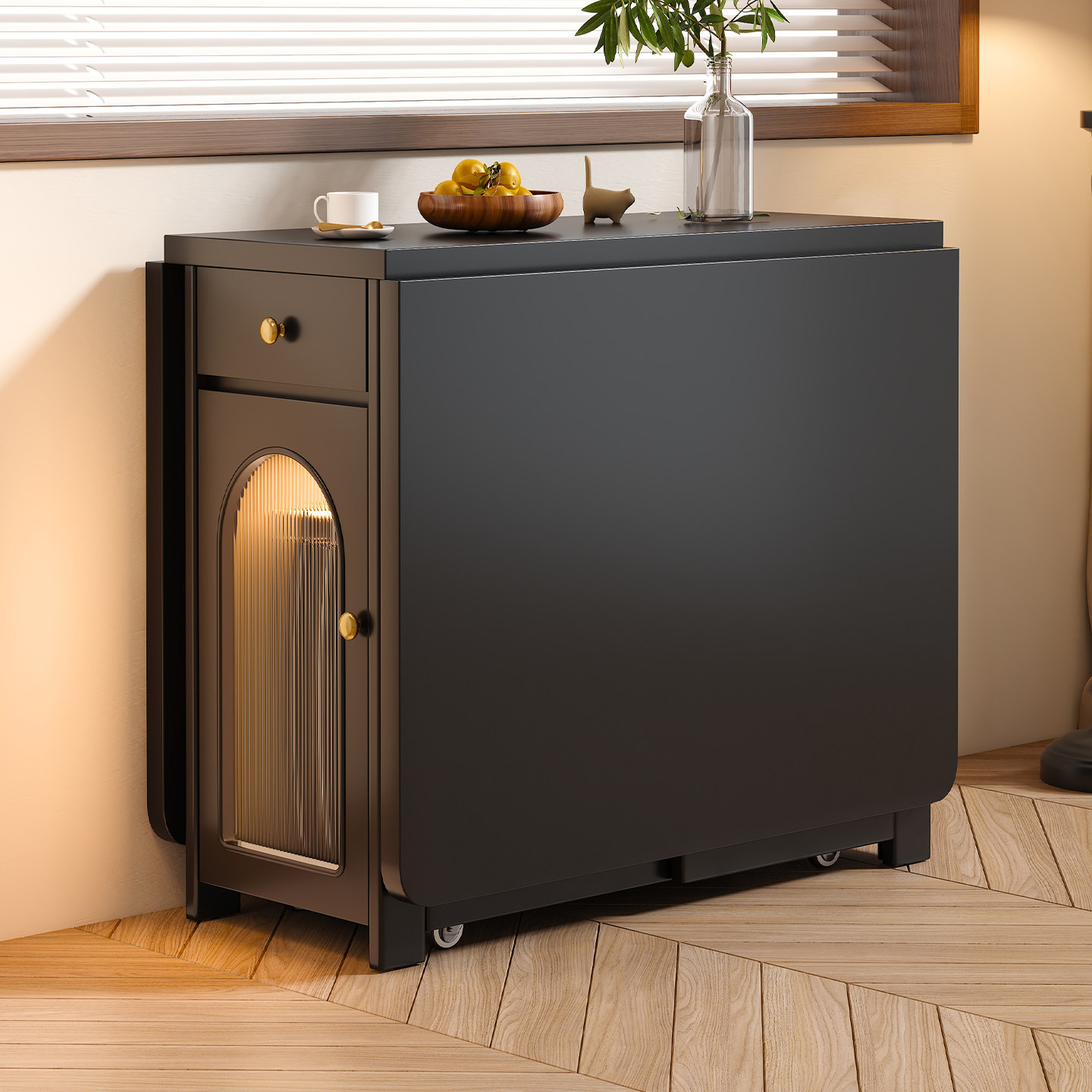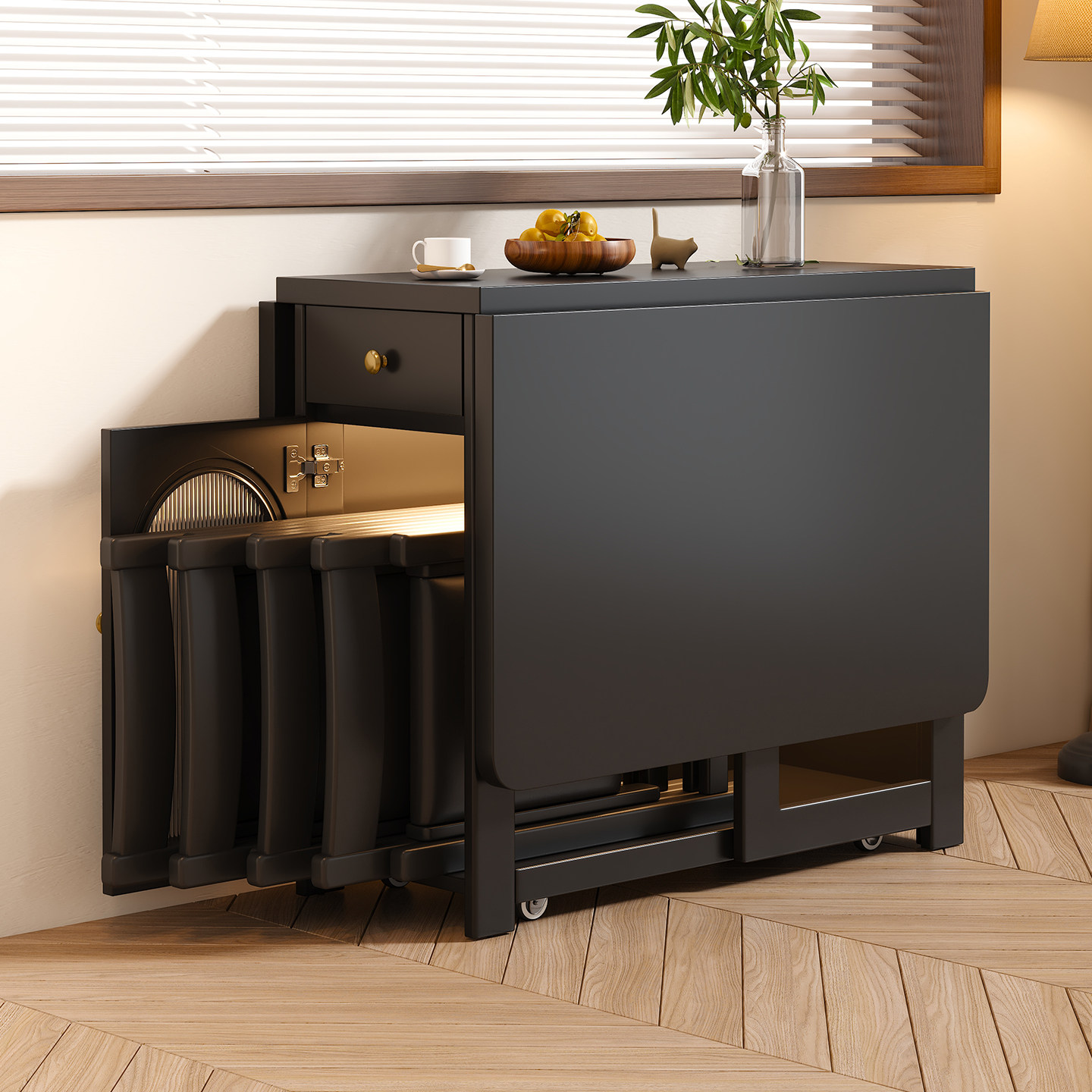 📚 法式复古全实木折叠餐桌家用小户型可移动长方形可伸缩隐形饭桌