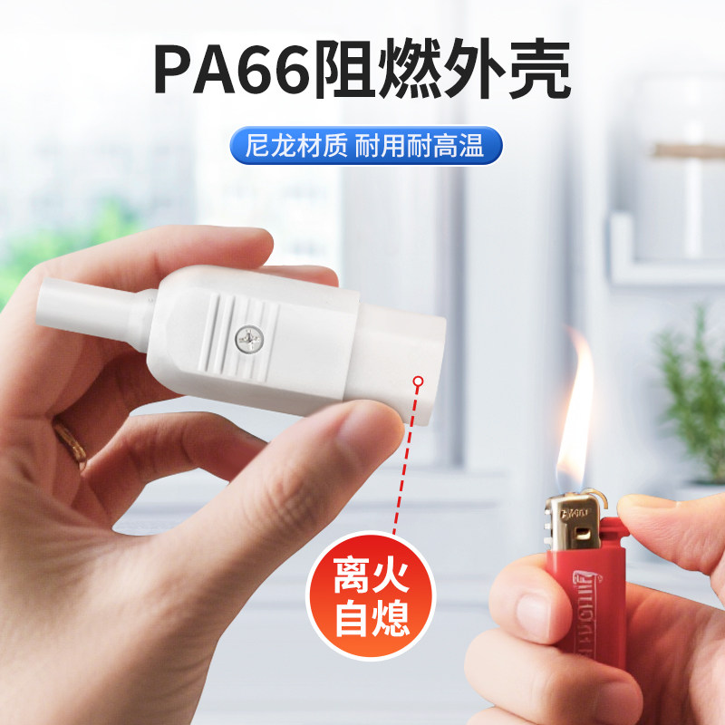 📚 白色15A大电流品字插头三芯插座电源插头10A 250V三孔公母对接头