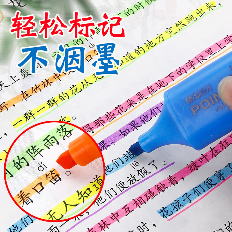 📚 晨光荧光彩笔标记笔银光莹光灾光颜色学生用彩色记号笔萤光营光做笔记专用划斜头标重点大容量马克黄色不透纸