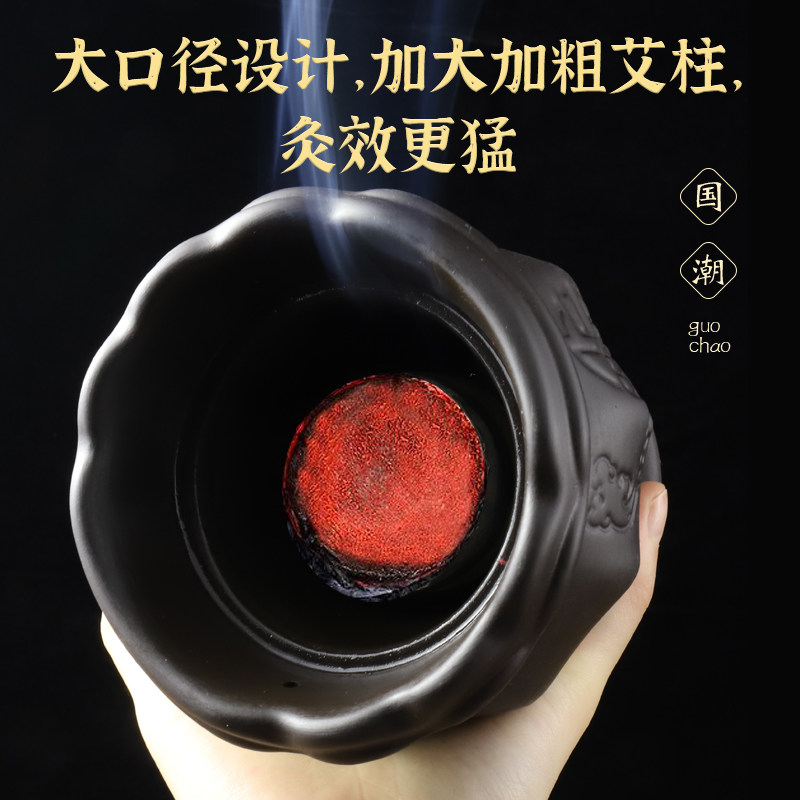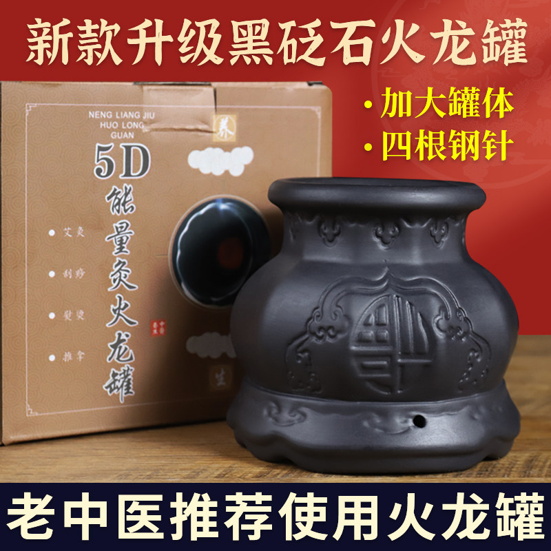 📚 黑砭石火龙罐中医专用罐家用美容院防烫刮痧罐按摩板口陶瓷艾灸罐