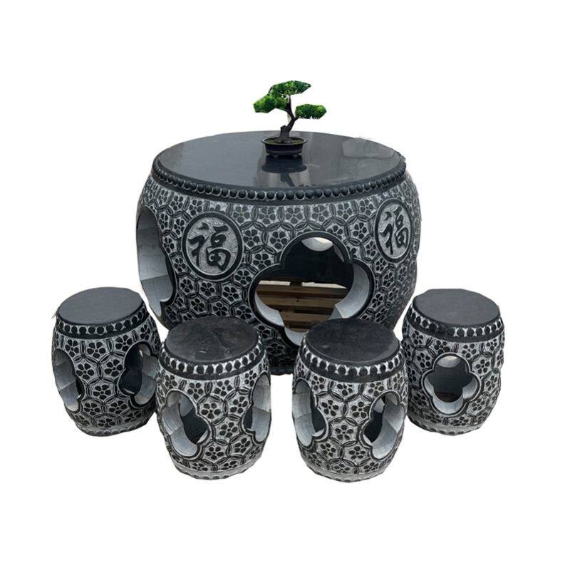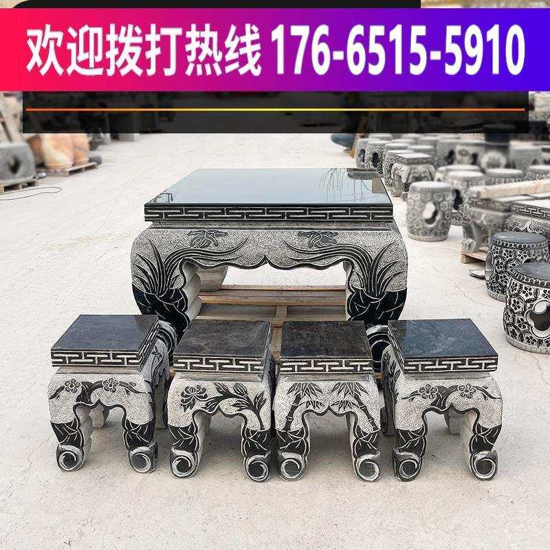 📚 圆桌椅一套花园茶桌天然大理石桌子户外摆件石雕石桌石凳青石庭院