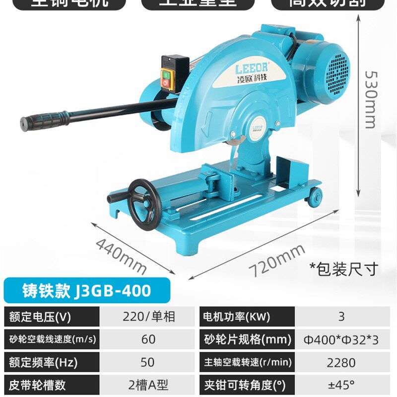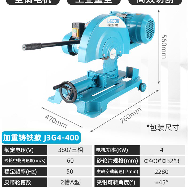 📚 凌欧400型全铜线钢材木材型材工业重型皮带切割机三相2.2/3KW