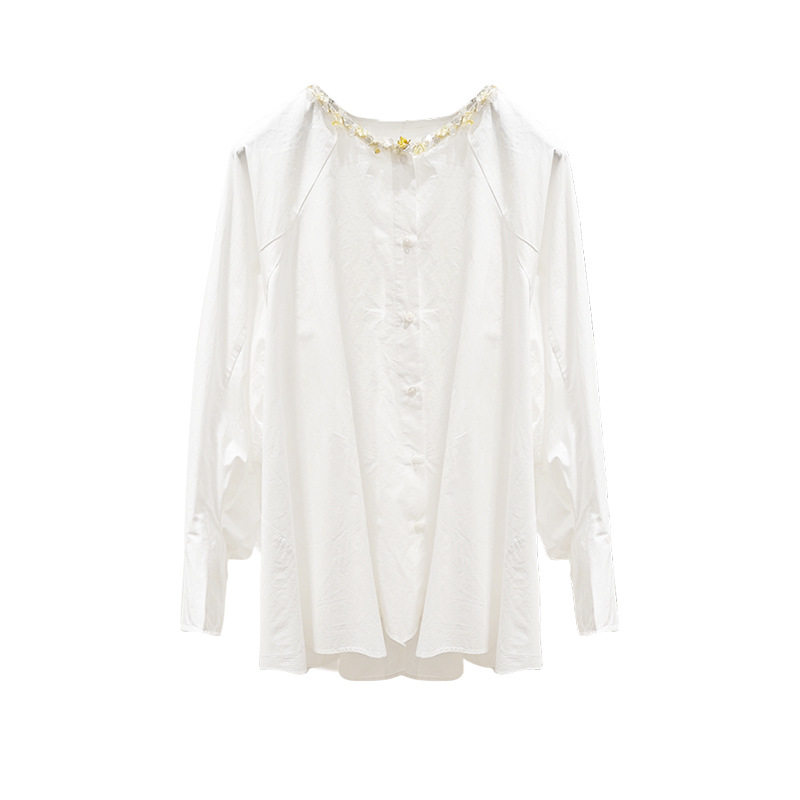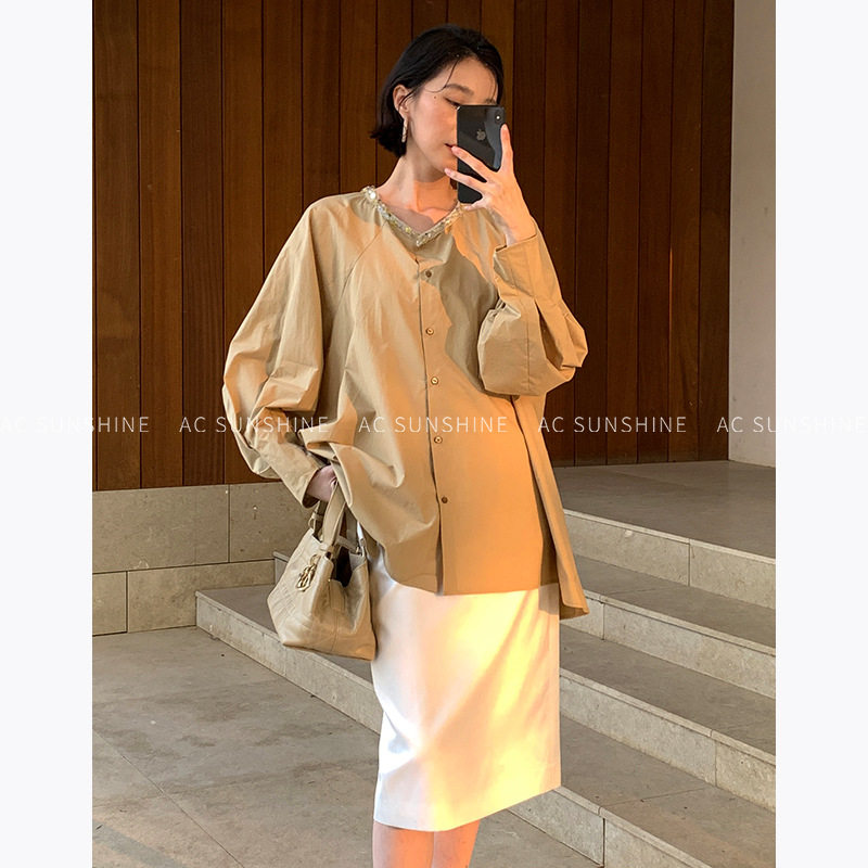 📚 AC SUNSHINE莱赛尔天丝棉重工钉珠花边圆领设计感衬衫女上衣19726