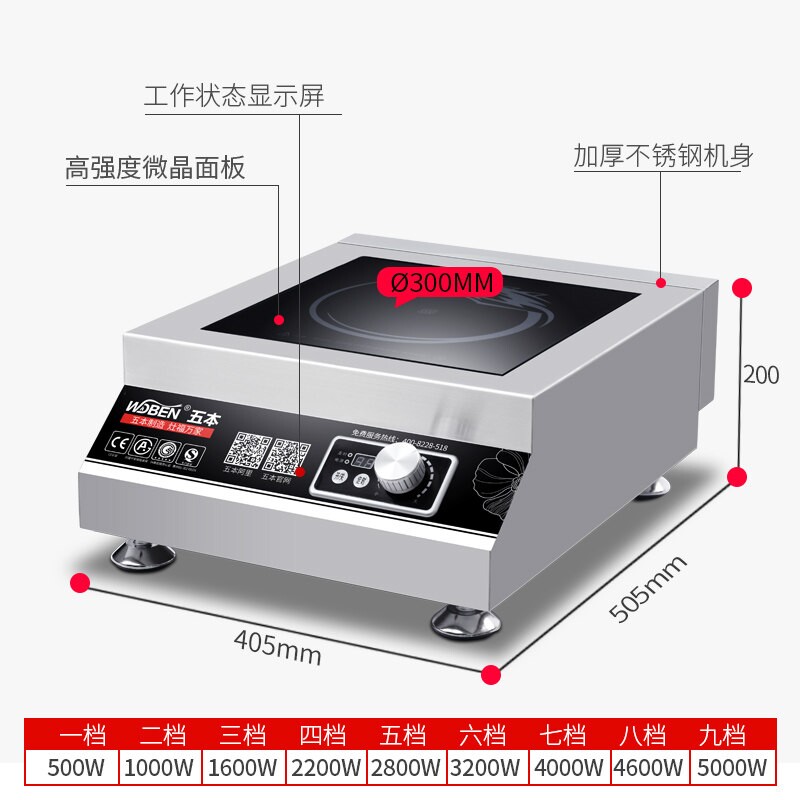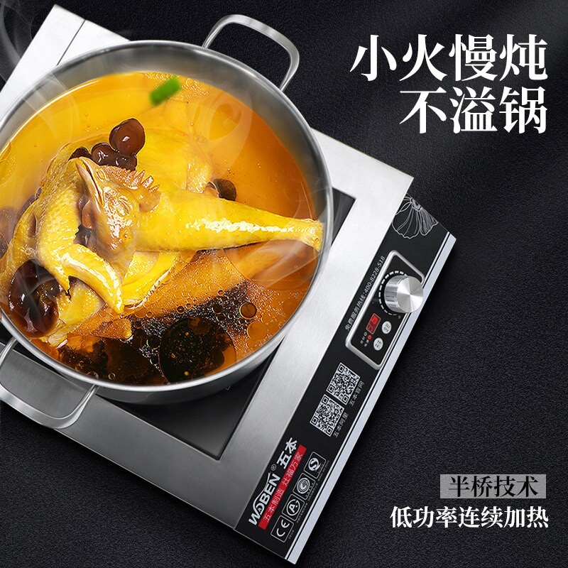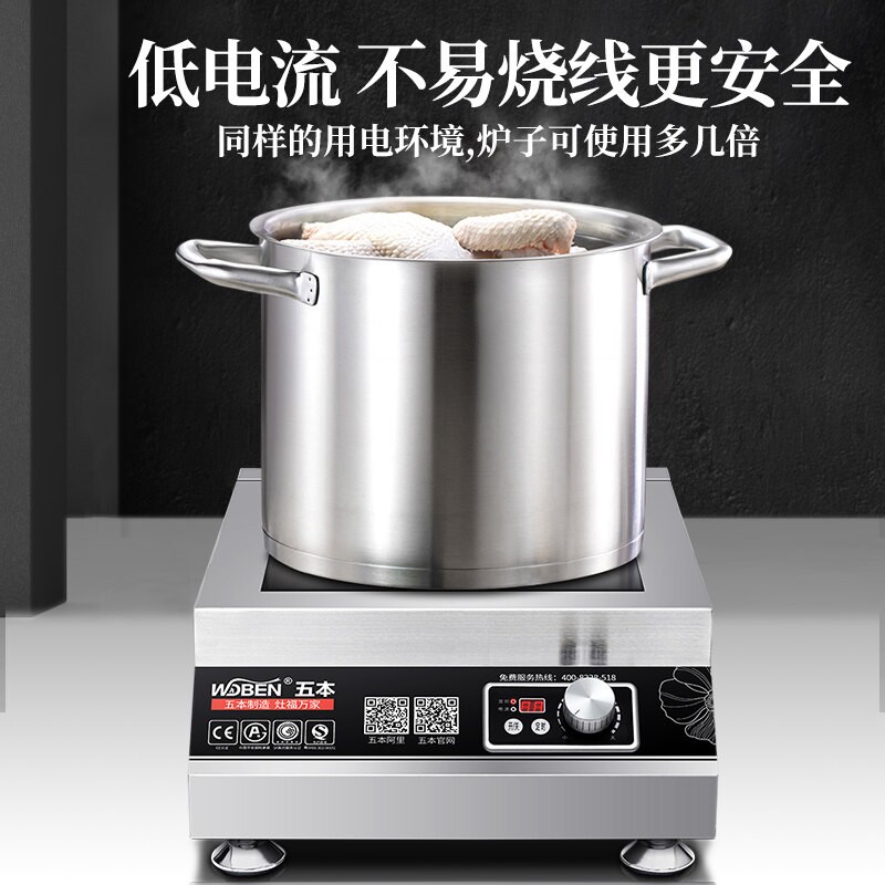 📚 五本商用电磁炉5KW大功率电磁炉5磁灶000W 电磁平面煲汤炉380V电
