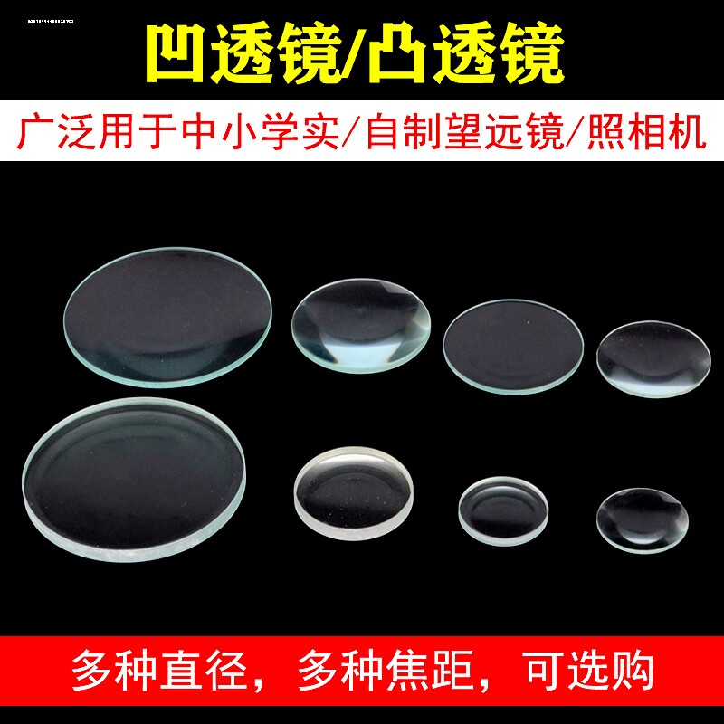 📚 光学玻璃镜片双凸双凹平凸凸透镜 磨砂玻璃照相机手工组装材料 初中物理光学仪器实验器材伽利略望远镜开普勒