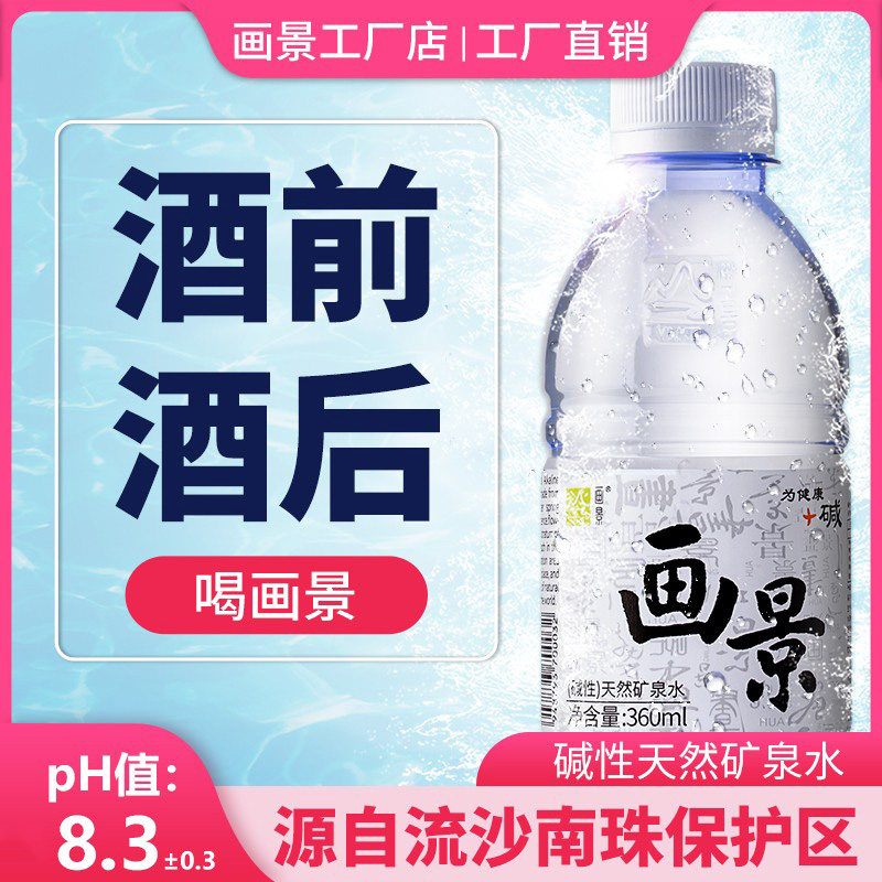 📚 画景天然弱碱性矿泉水360ml*24瓶整箱小瓶小分子水含锶无糖饮用水