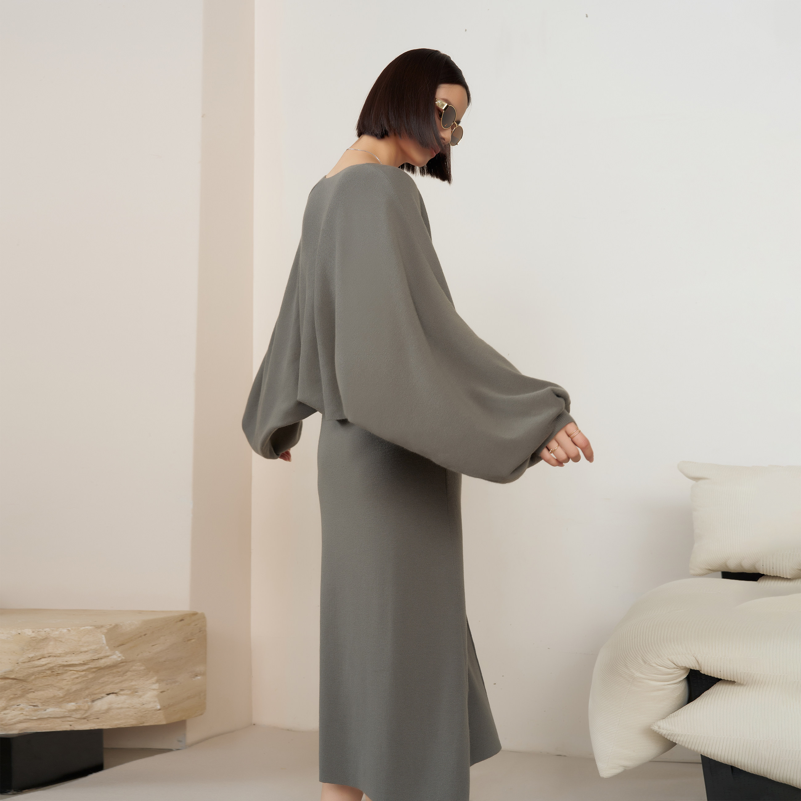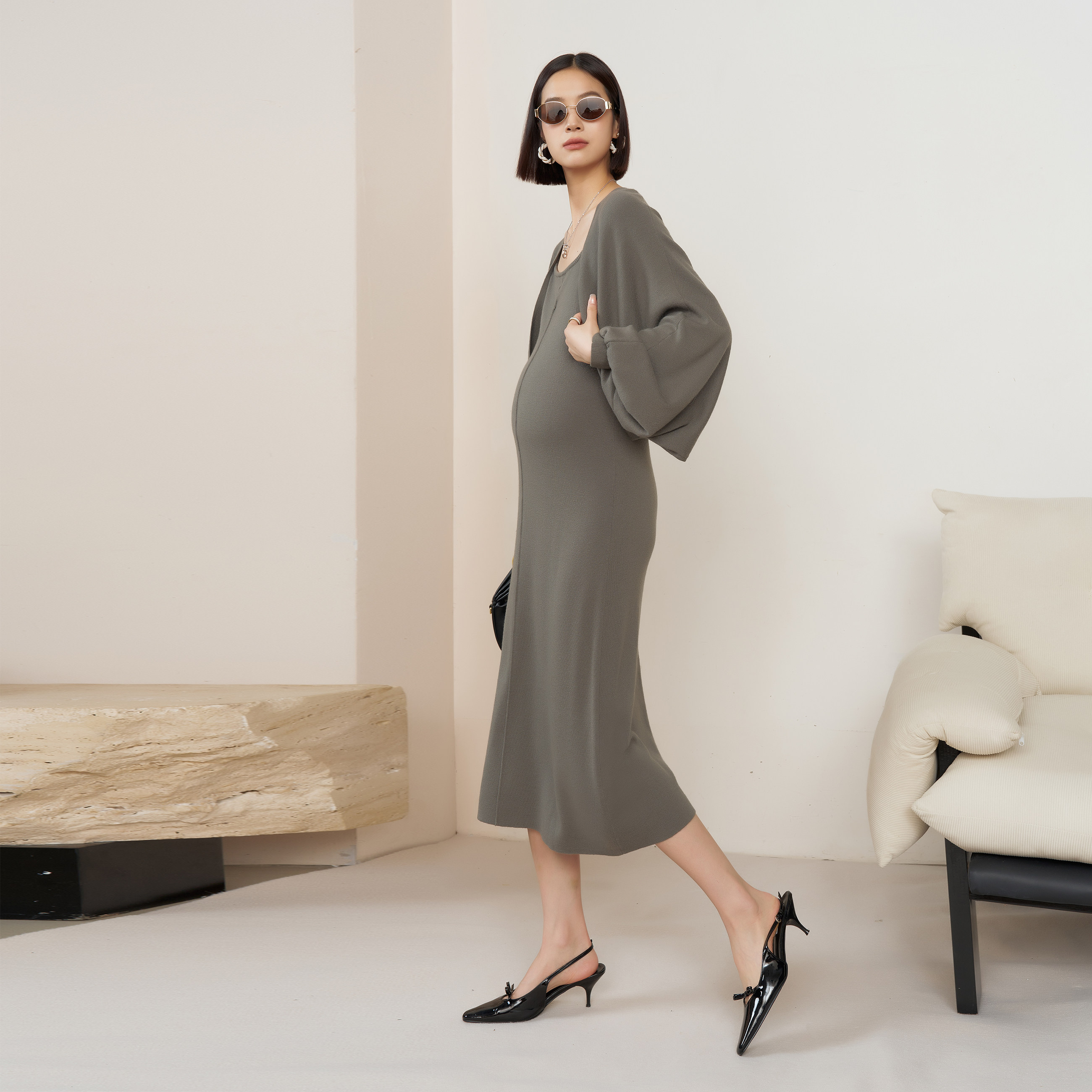 📚 BELLYWEAR孕妇装套装时尚新款岩石灰慵懒气质连衣裙针织开衫套装