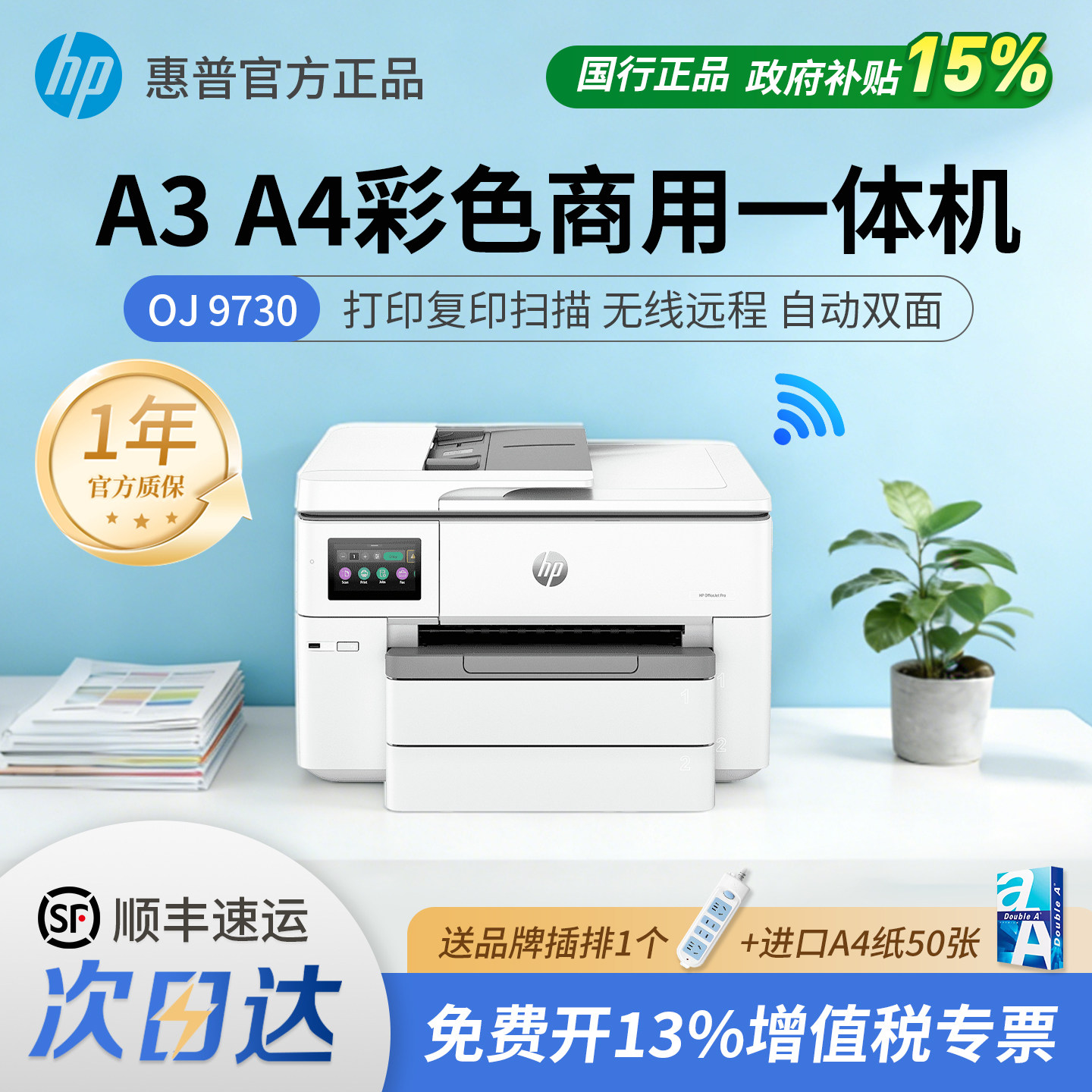 📚 惠普A3彩色喷墨打印机OJ9730办公商用复印扫描无线自动双面9720