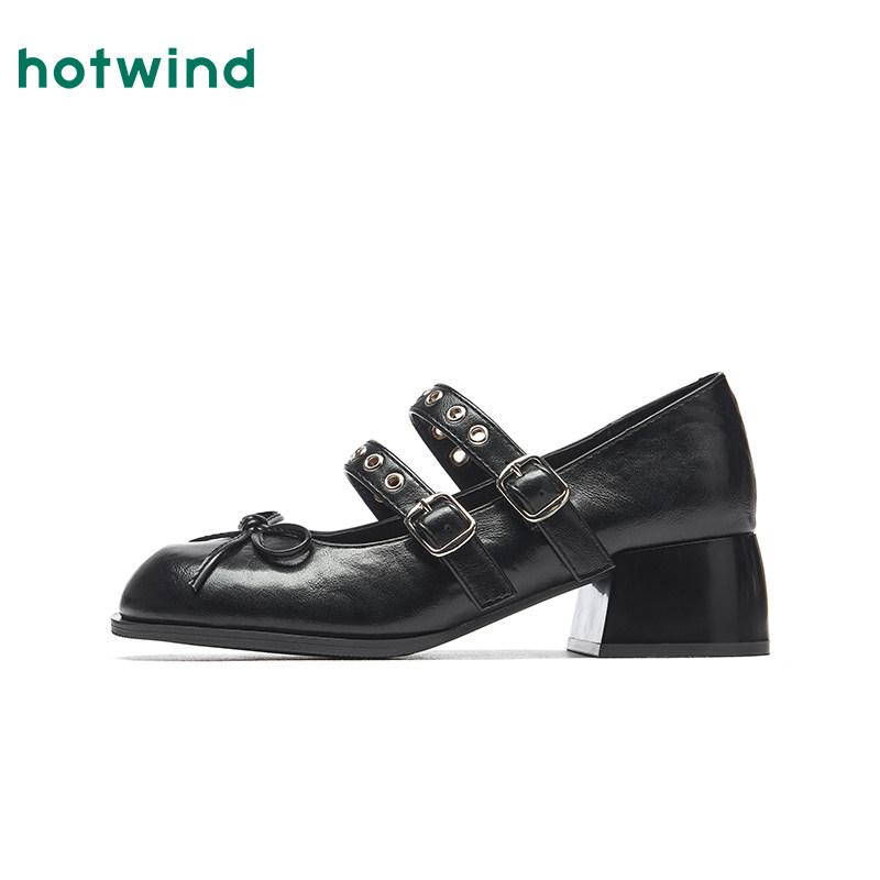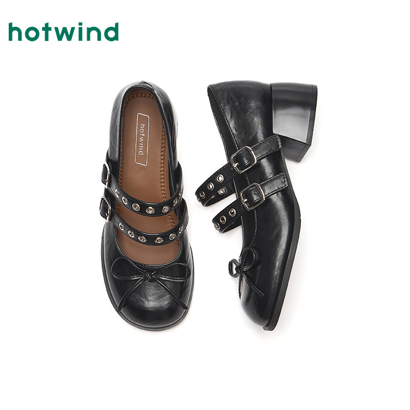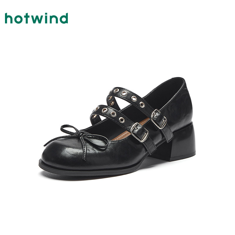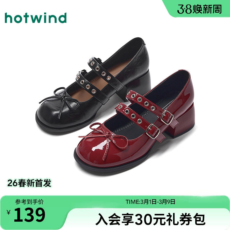 📚 热风粗跟玛丽珍鞋女2026年春季新款蝴蝶结浅口单鞋百搭配裙子女鞋