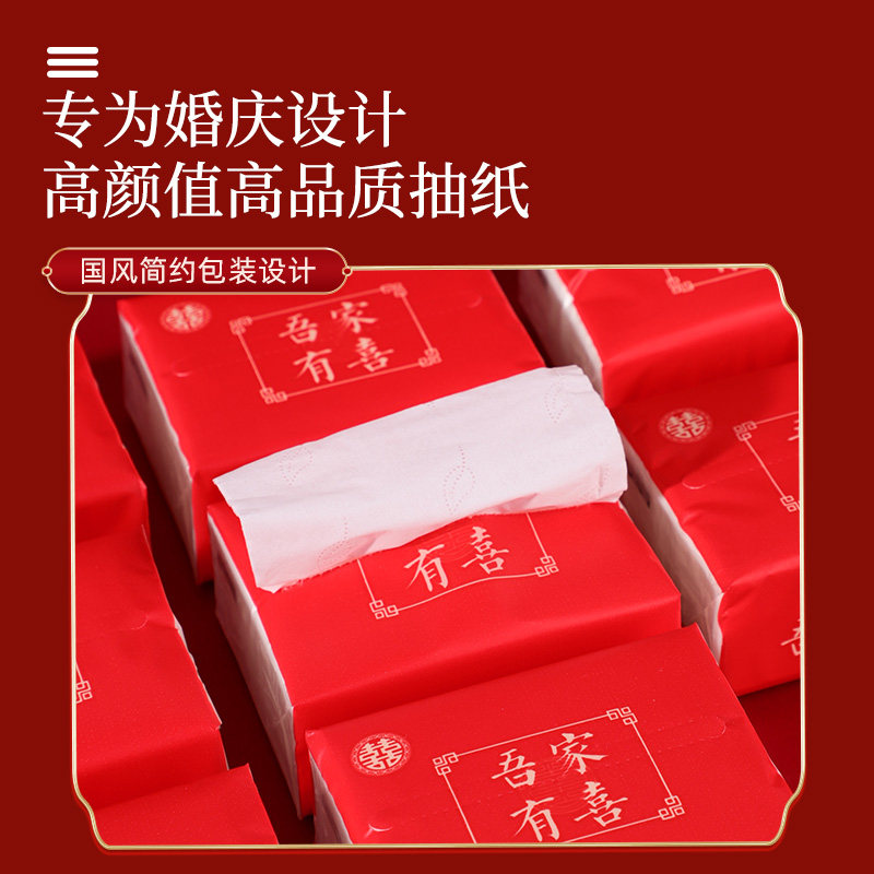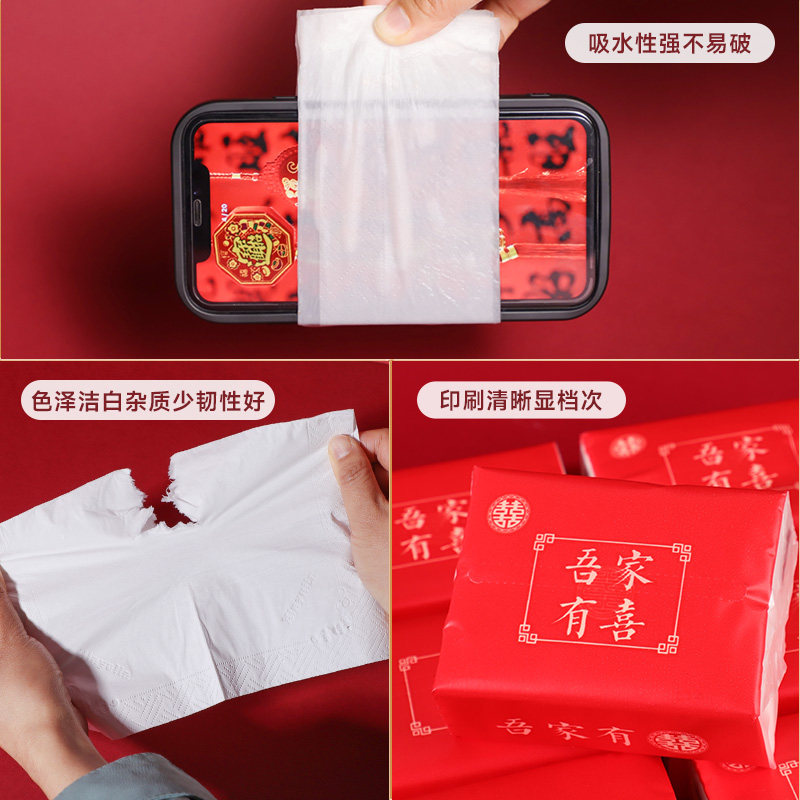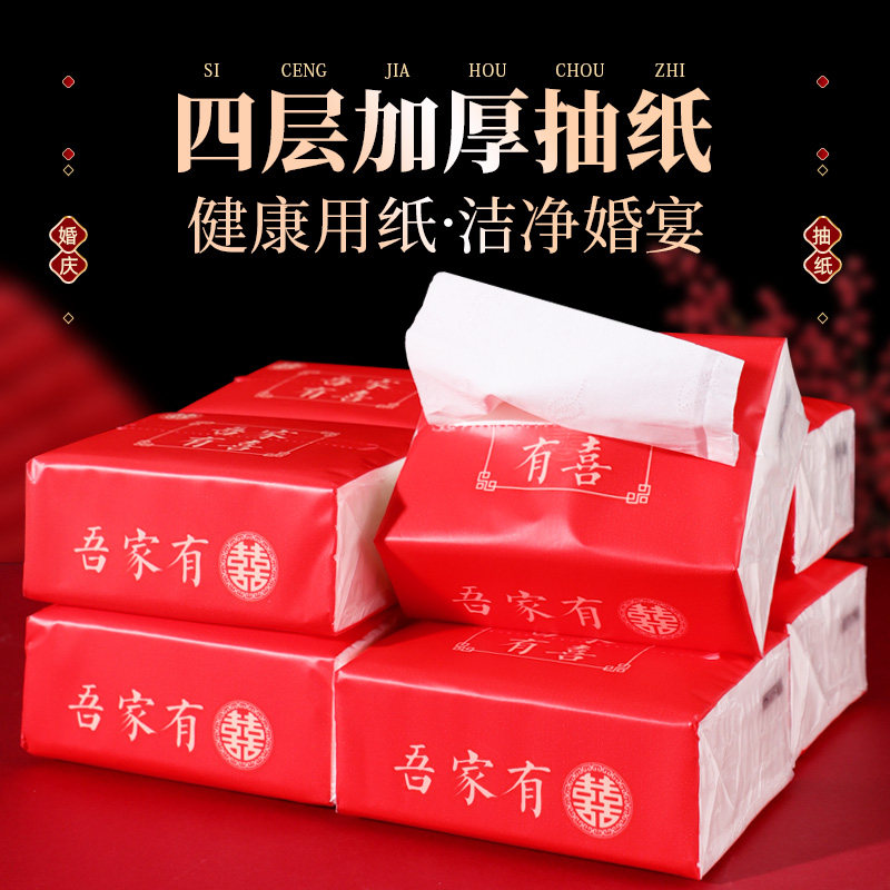 📚 结婚专用抽纸巾酒席专用整箱批发婚庆订婚餐巾纸喜宴喜事红色抽纸