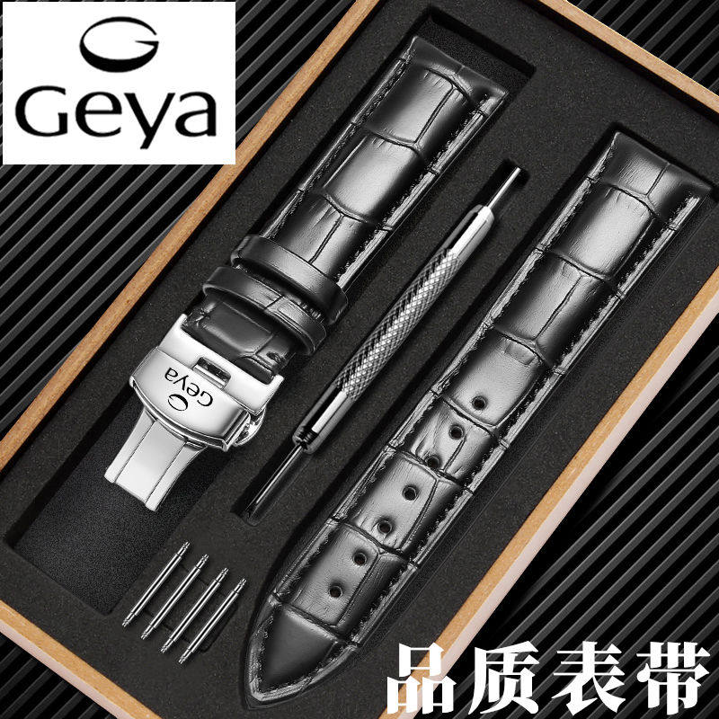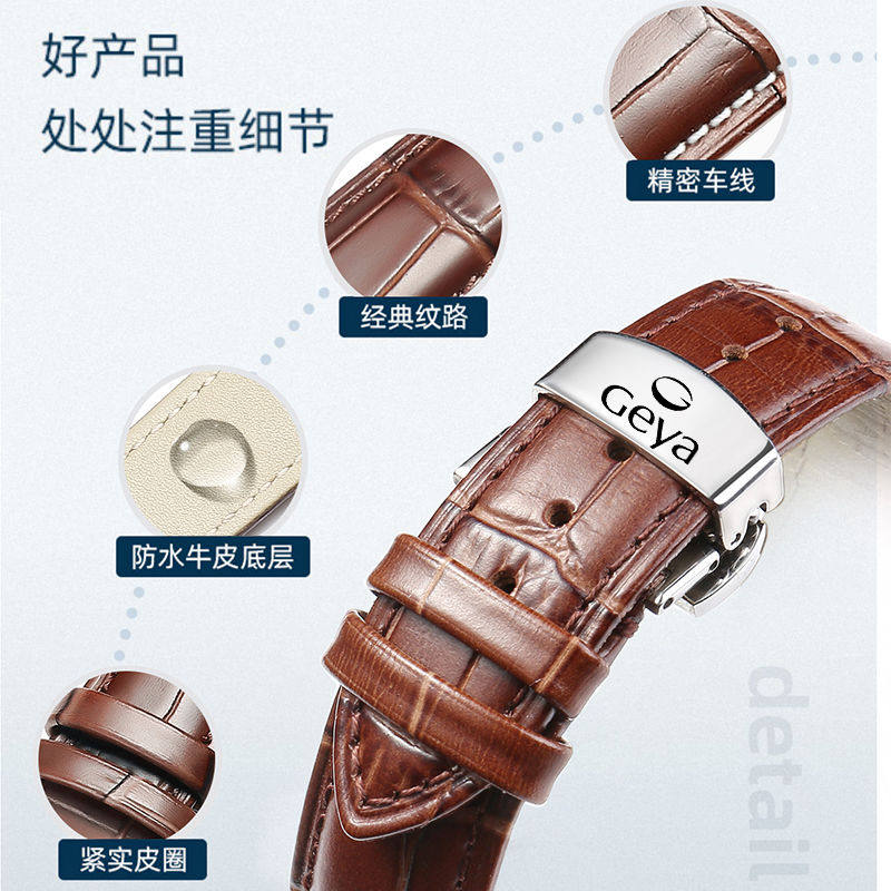📚 格雅手表表带真皮男女原装款蝴蝶扣牛皮手表链18 19 20 21mm