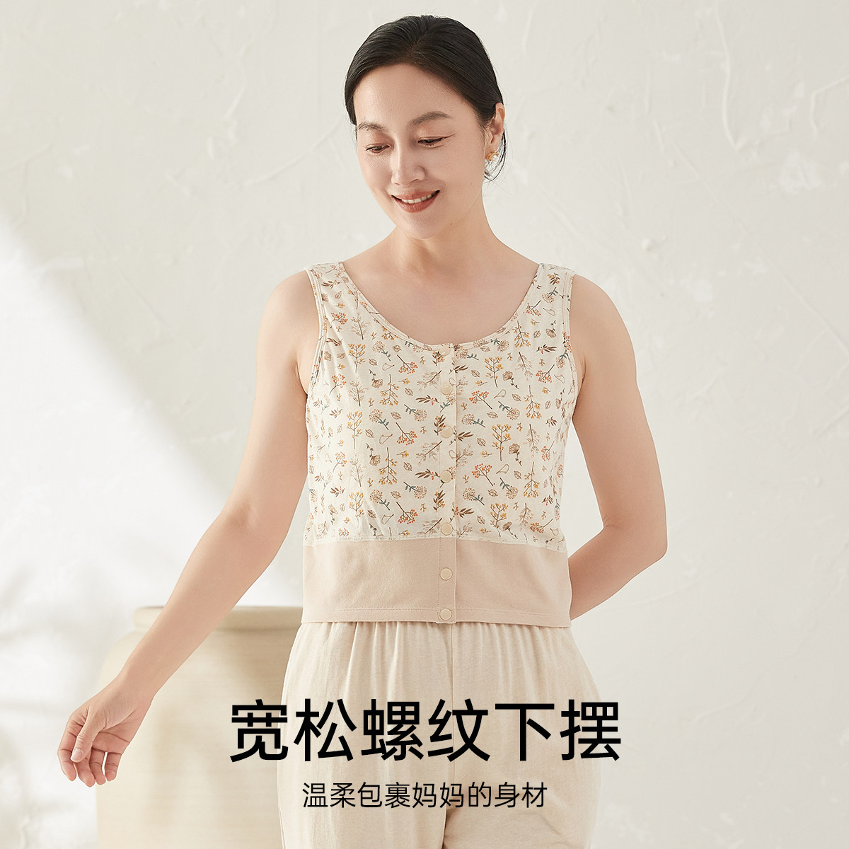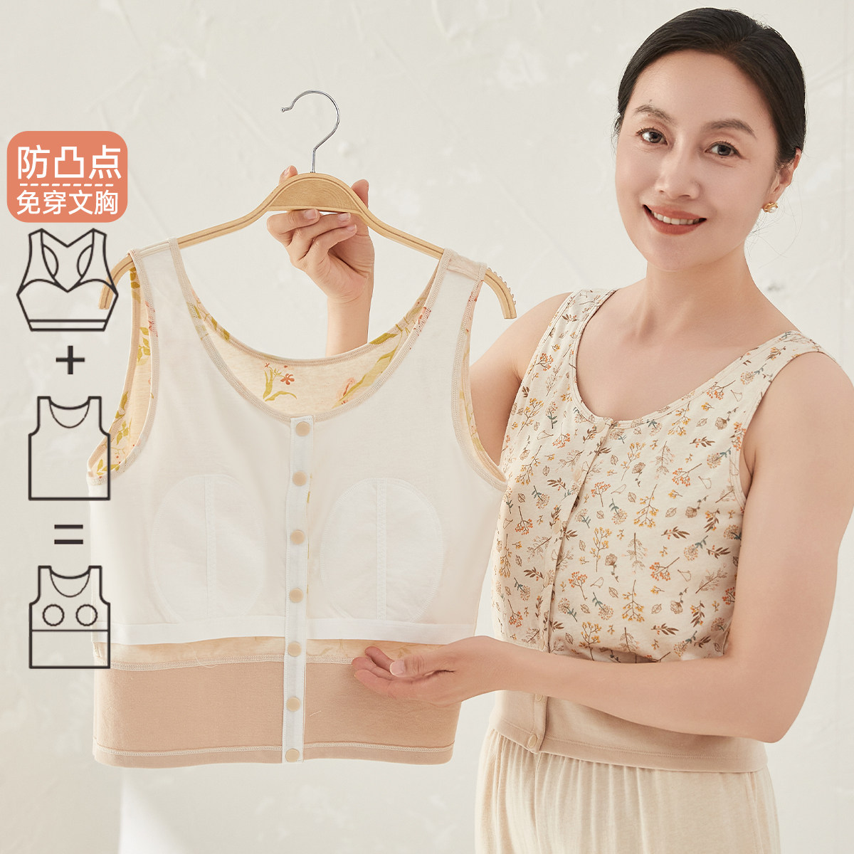 📚 顶瓜瓜前开扣天然彩棉妈妈带胸垫二合一防凸点背心免穿文胸打底衫