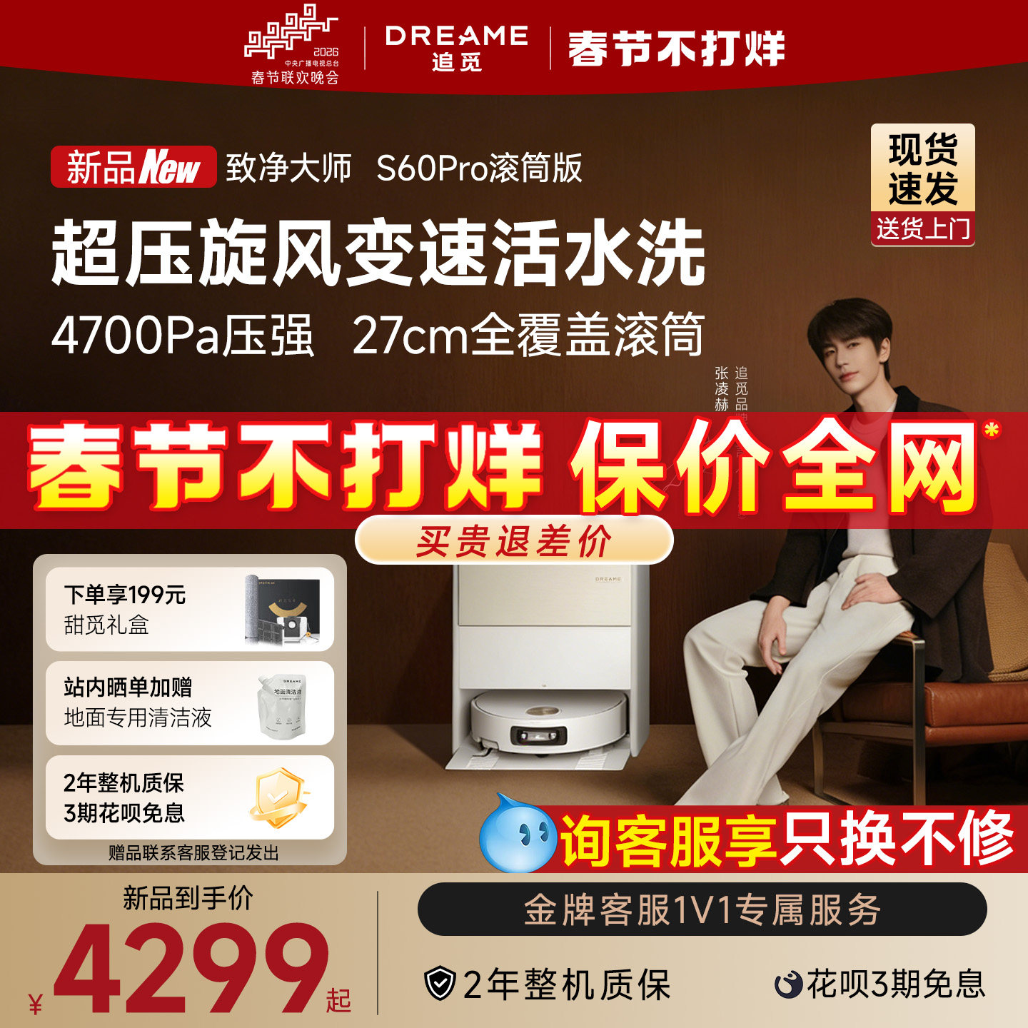 📚 【春晚同款新品】追觅致净大师S60Pro滚筒扫地机器人扫拖洗烘一体