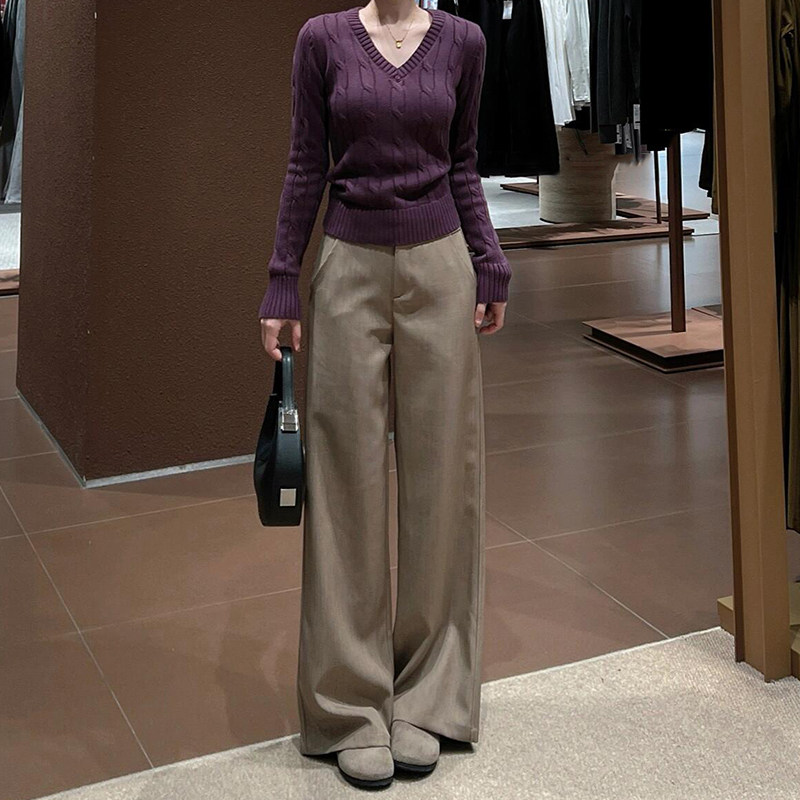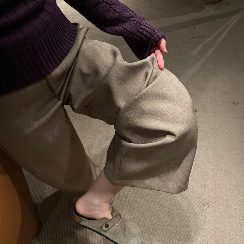 📚 老钱风阔腿裤卡其色西装裤大码咖色春季新款裤子女今年流行梧桐裤