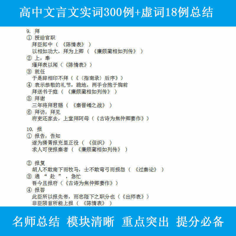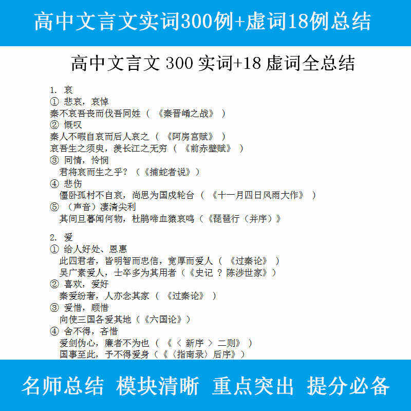 📚 高中语文文言文实词虚词汇总手册高一高二高三高考提分必背总结本