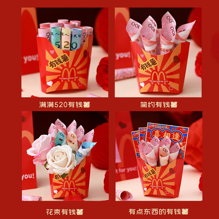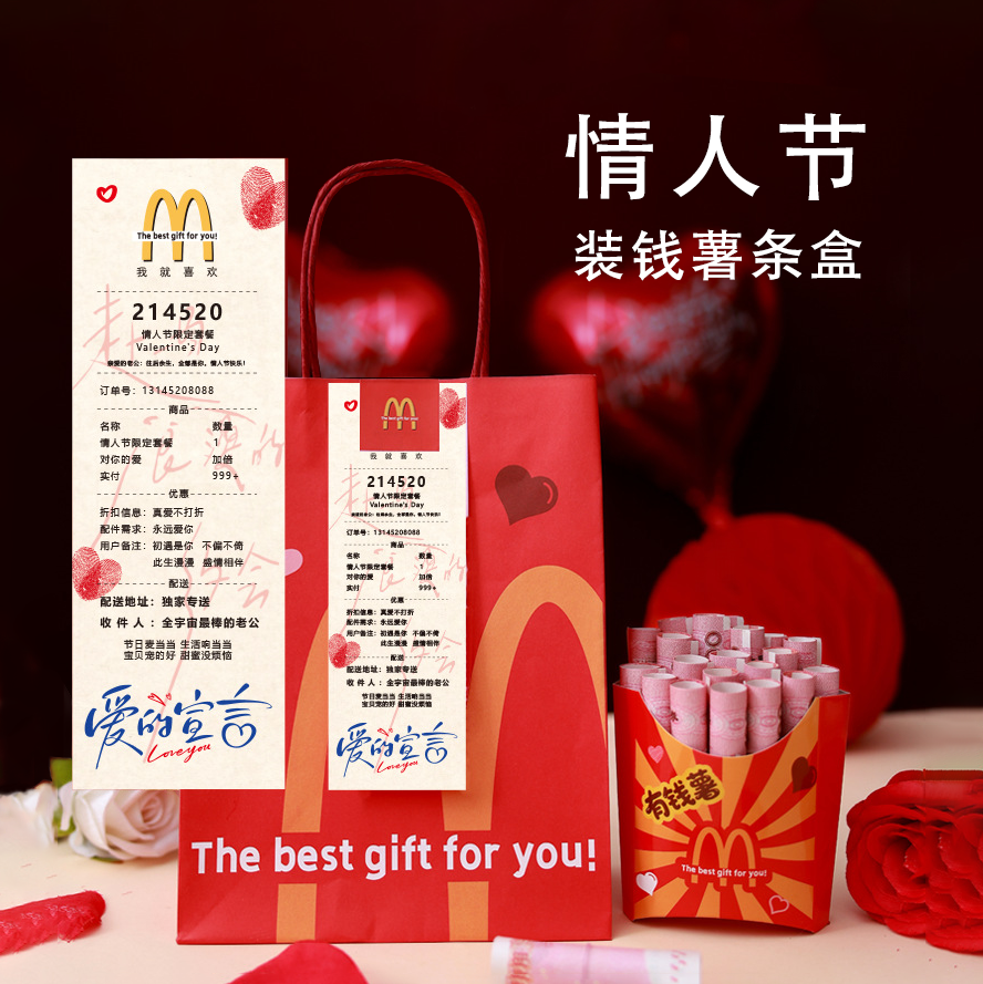 📚 情人节礼物创意装钱薯条盒送老婆薯条盒有钱数送女朋友送老公老婆