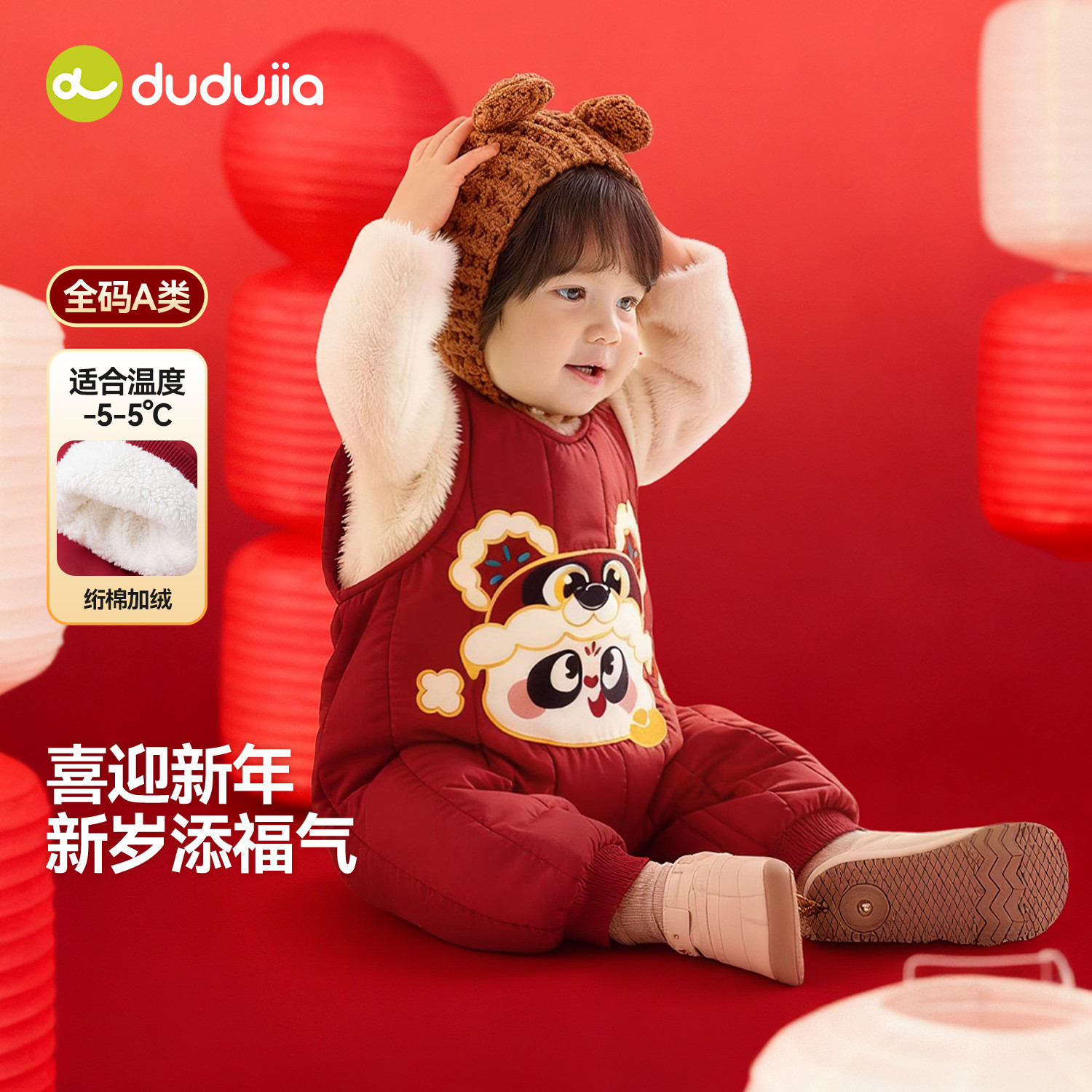 📚 嘟嘟家宝宝连体衣红色男童裤子婴儿新年衣服女童新生周岁礼服哈衣